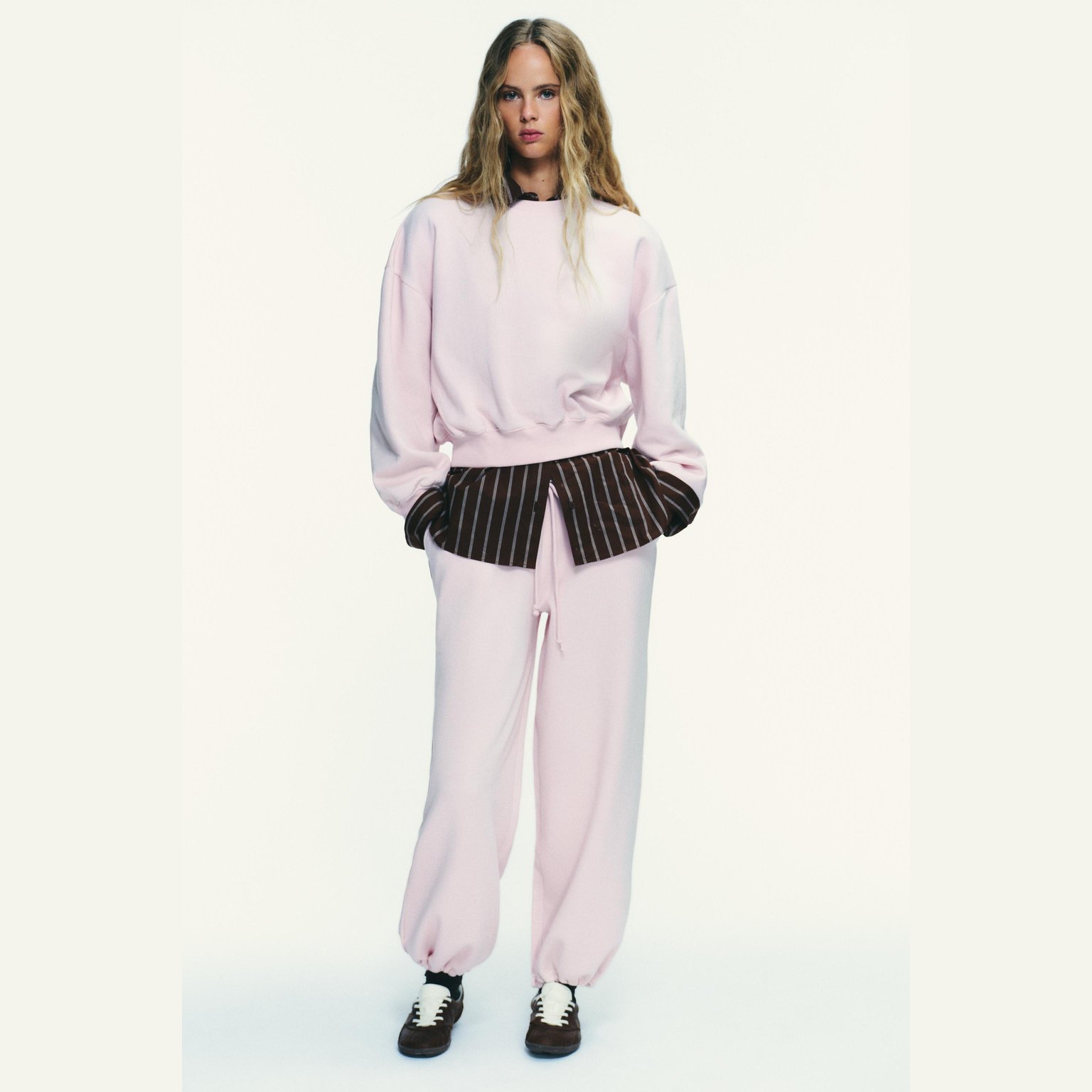 سويت‑شيرت بملمس ناعم – لون وردي – Pink (Basic Plush Sweatshirt) سويت‑شيرت مريح بملمس ناعم، يأتي بياقة دائرية وأكمام طويلة مع أطراف محبوكة تمنح ثباتًا وأناقة بسيطة. تصميم عملي يناسب الإطلالات اليومية والكاجوال، وخامته القطنية تمنح راحة طوال اليوم.