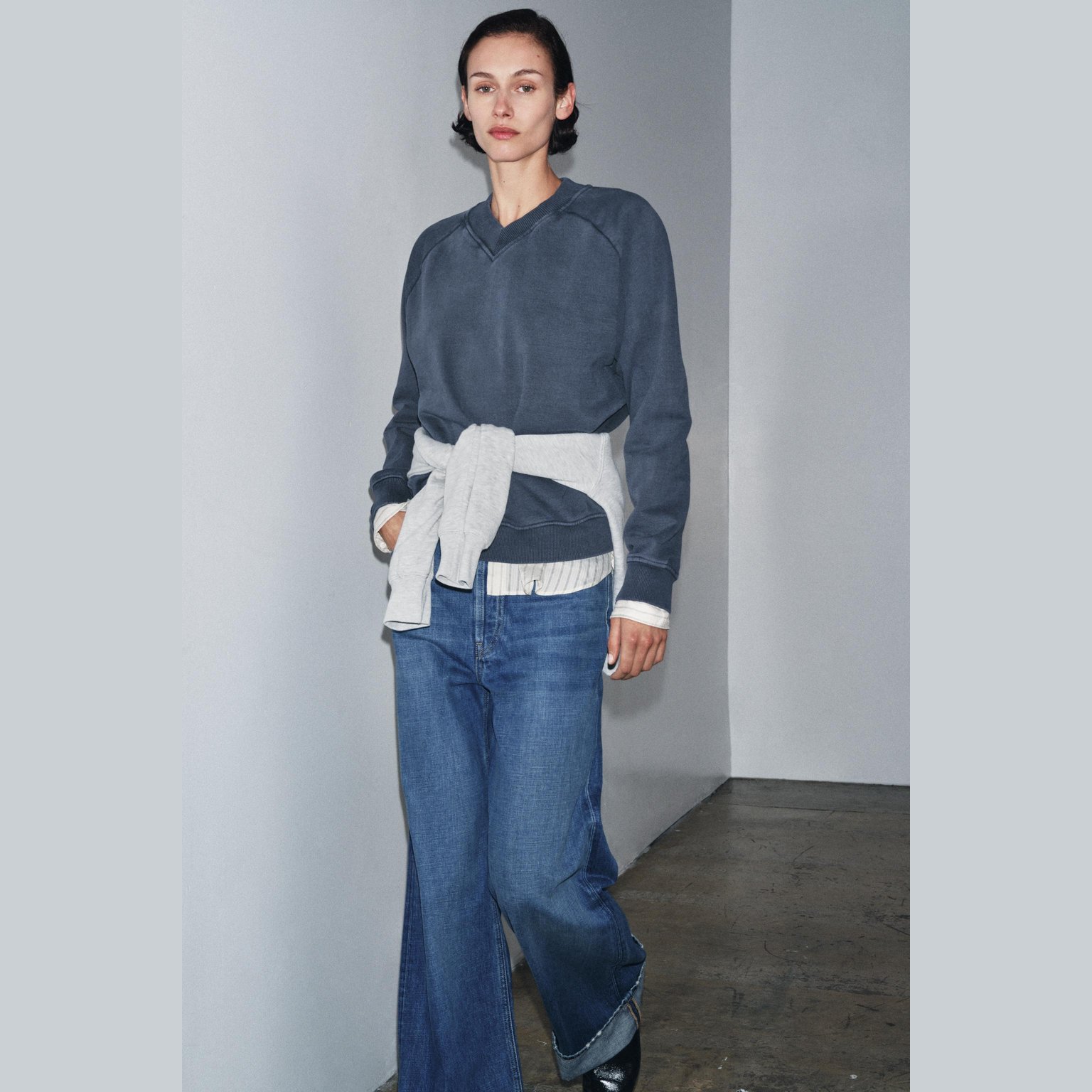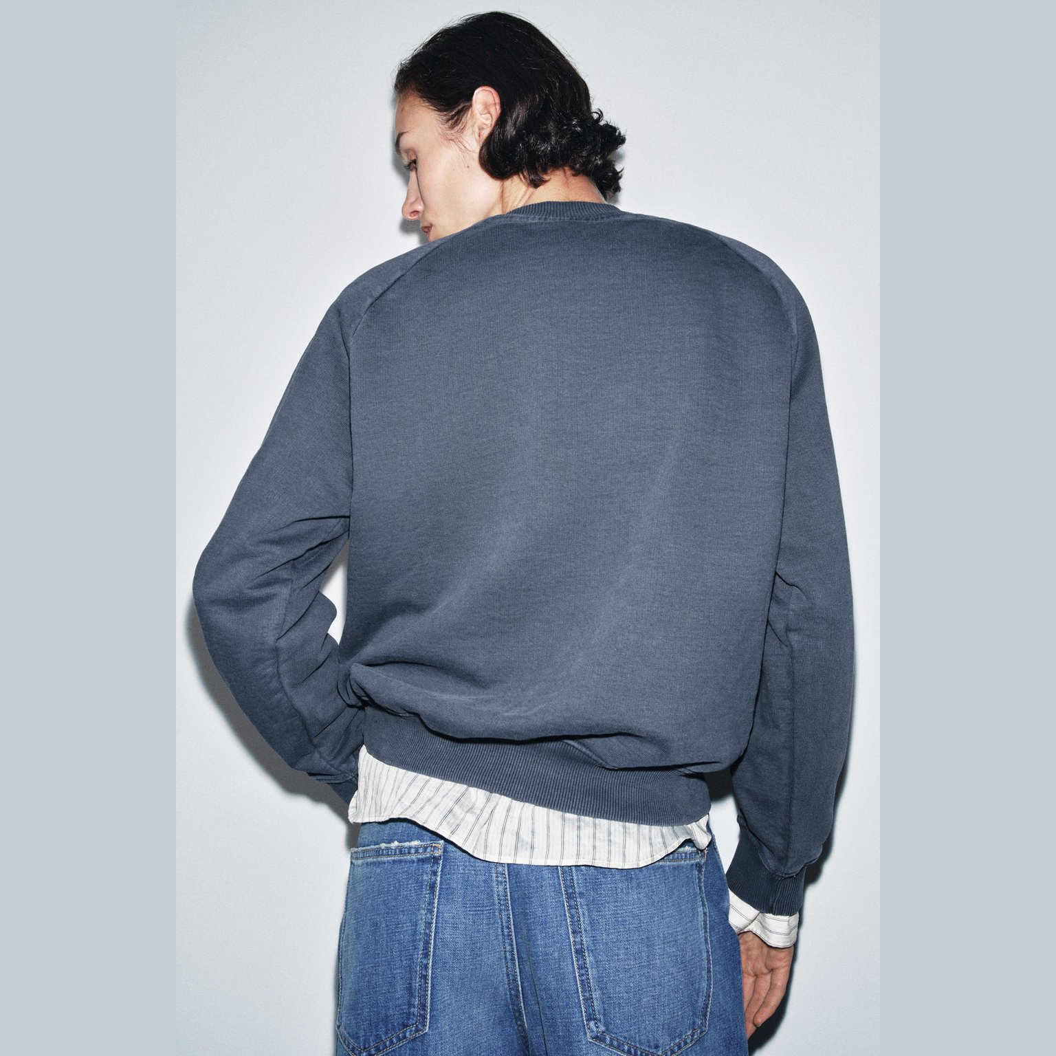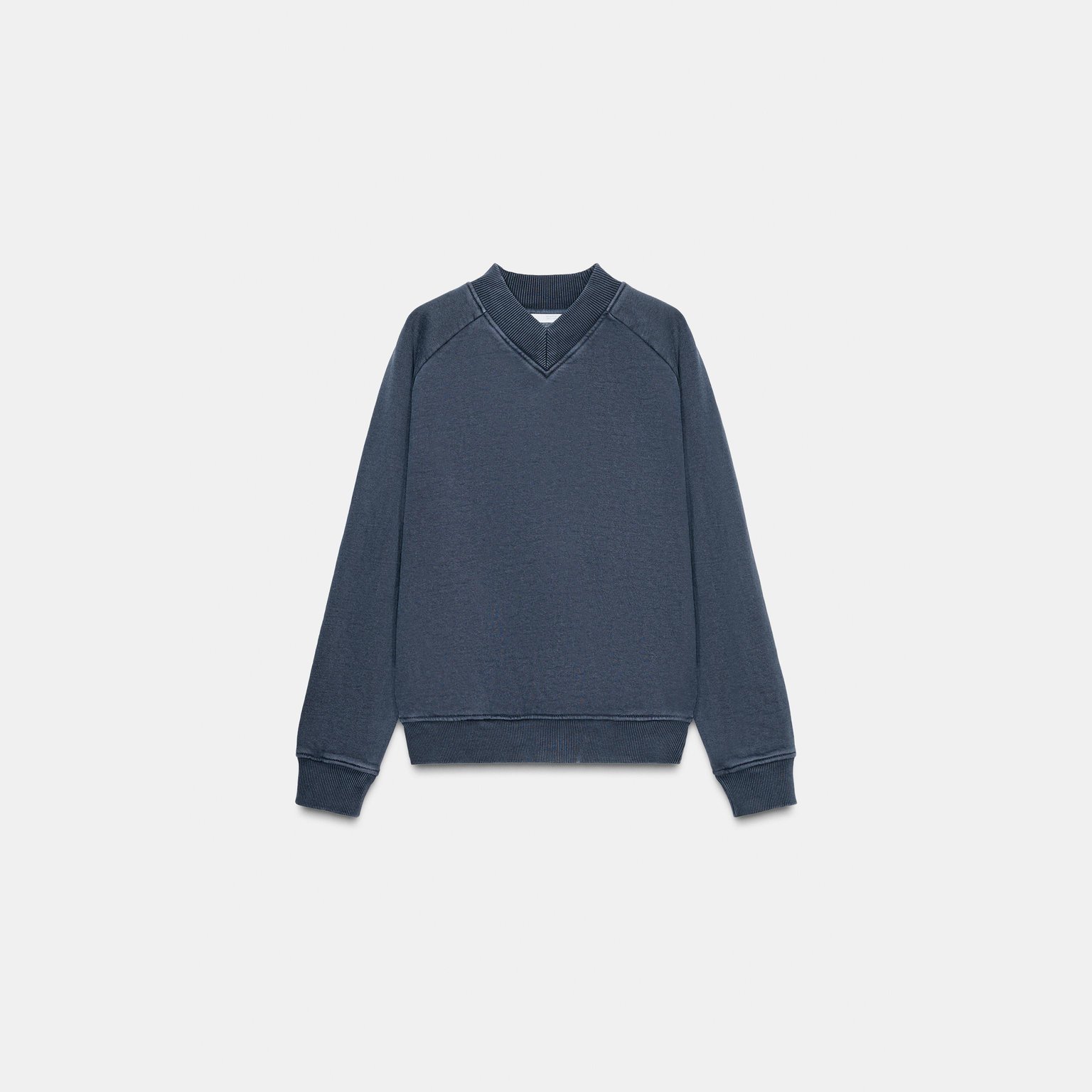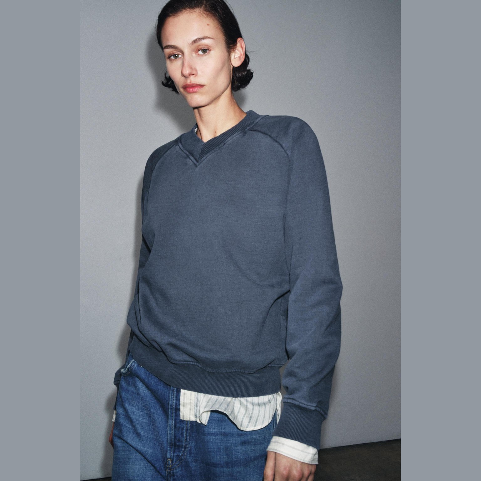 سويتشيرت مريح بتصميم كلاسيكي يأتي بقصّة عادية وأكمام طويلة مع ياقة V، يتميز بتأثير باهت يمنحه طابعًا عصريًا بسيطًا، مع أطراف محبوكة تضيف ثباتًا وأناقة خفيفة، مما يجعله مناسبًا للإطلالات اليومية والكاجوال.
