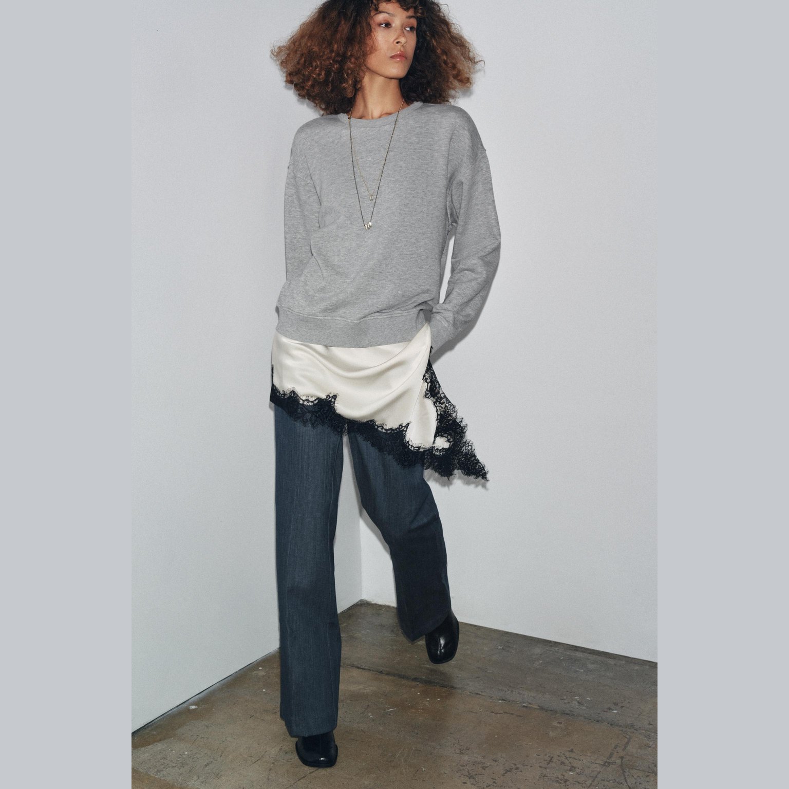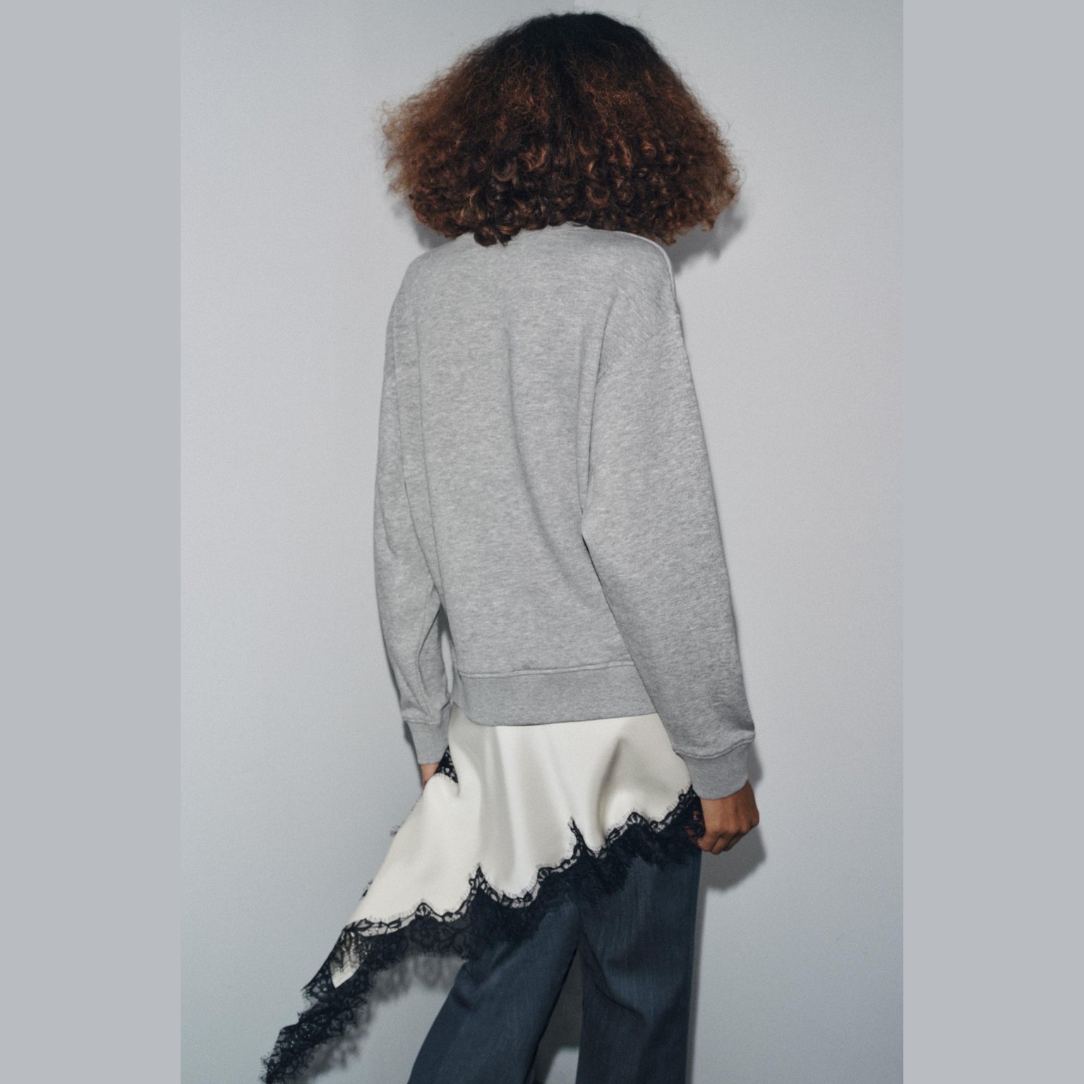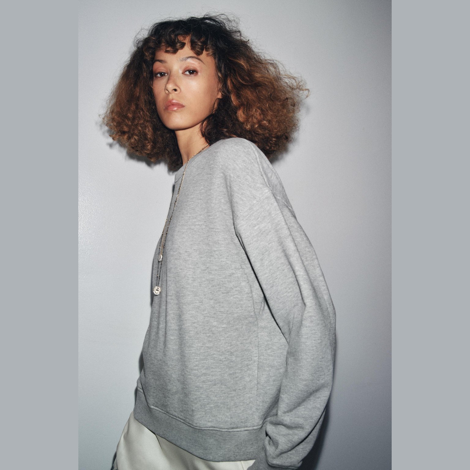 سويتشيرت مريح بخامة قطنية ناعمة وتصميم كلاسيكي يأتي بياقة مستديرة وأكمام طويلة مع أطراف محبوكة بلون متناغم، يمنح إطلالة بسيطة وعملية مناسبة للاستخدام اليومي بفضل ملمسه المريح وتفاصيله الأساسية.