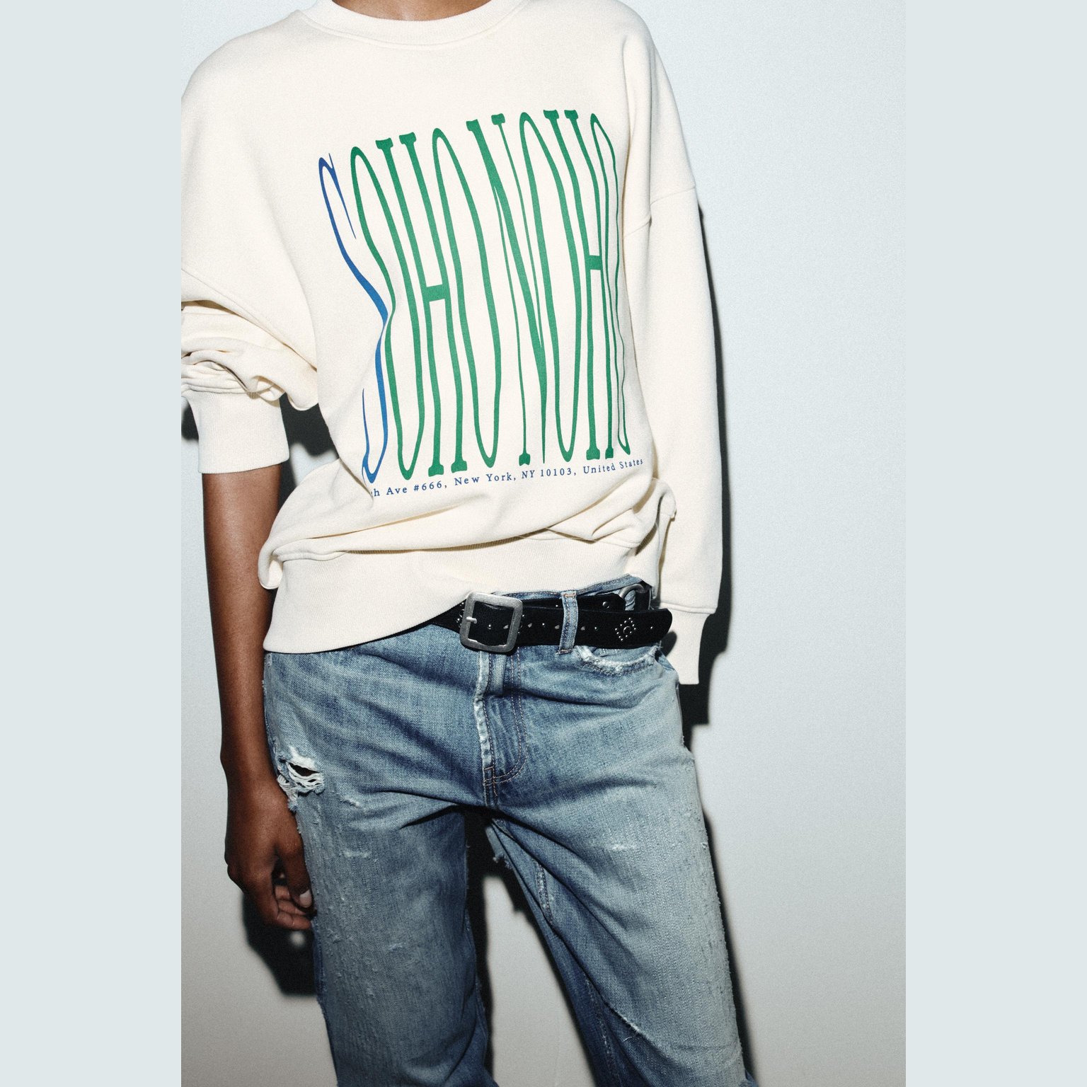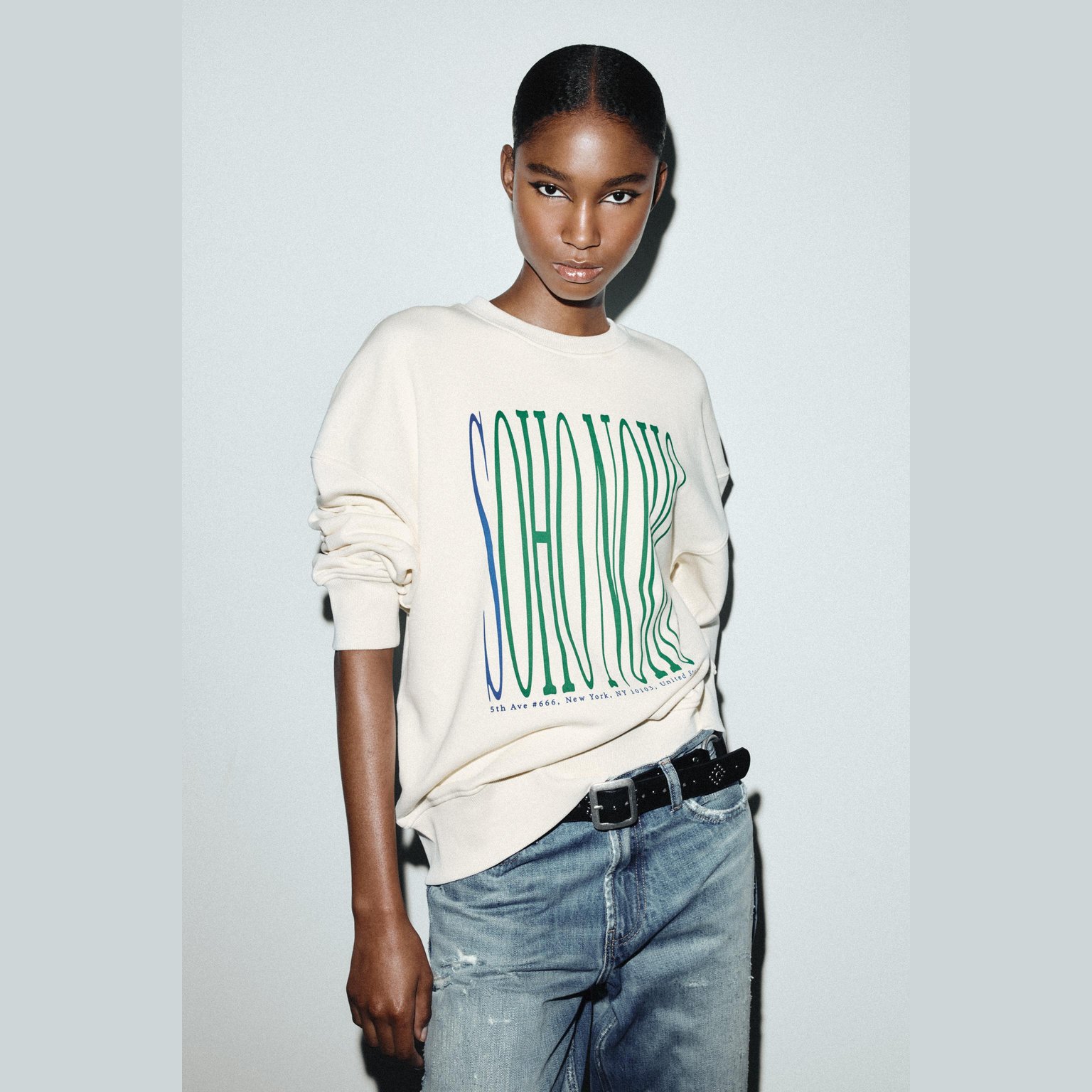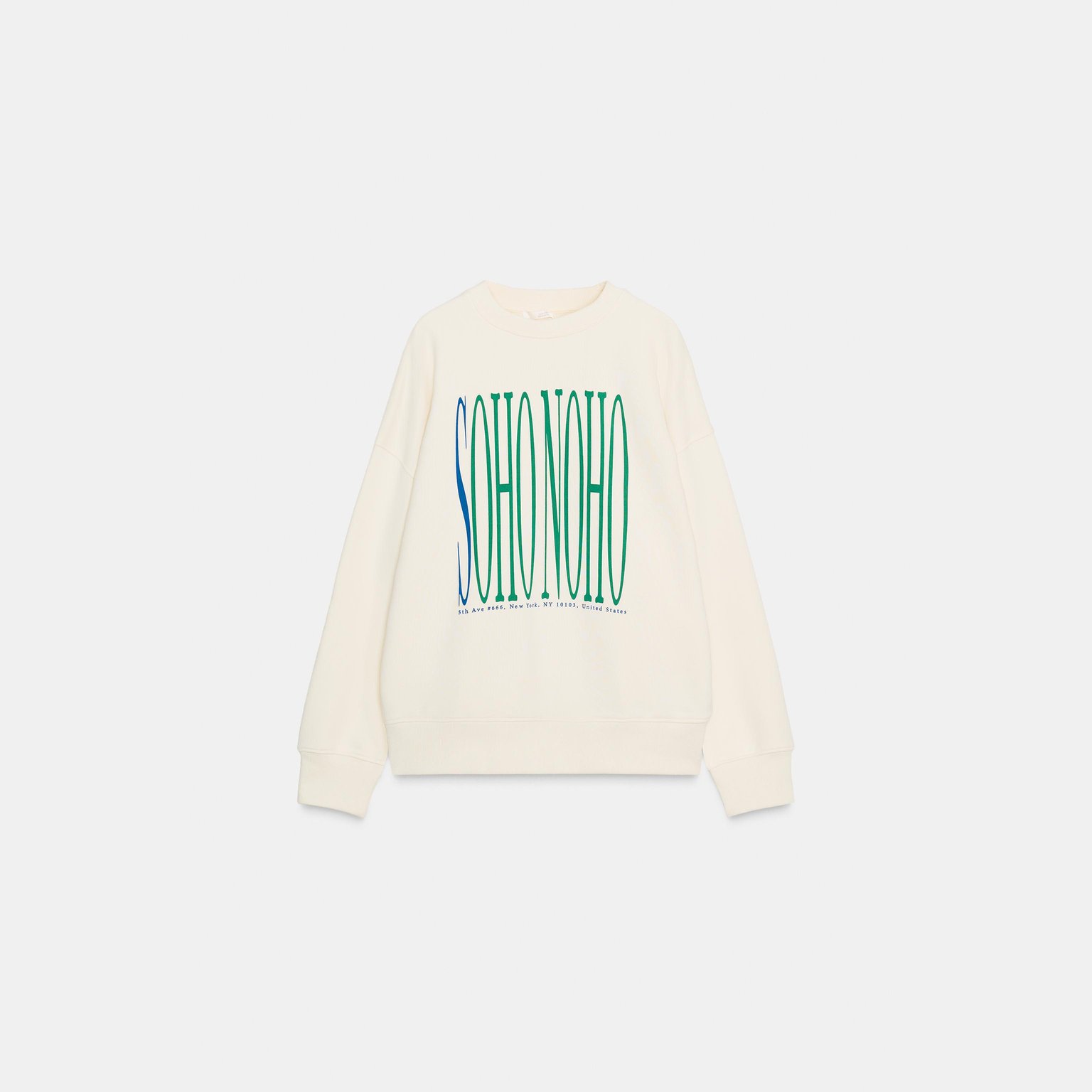 سويتشيرت مريح بخامة قطنية ناعمة وتصميم كلاسيكي يأتي بياقة مستديرة وأكمام طويلة، مع سلوغان أمامي متباين يمنح لمسة عصرية بسيطة، وأطراف محبوكة تضيف ثباتًا وأناقة يومية مناسبة للإطلالات الكاجوال.