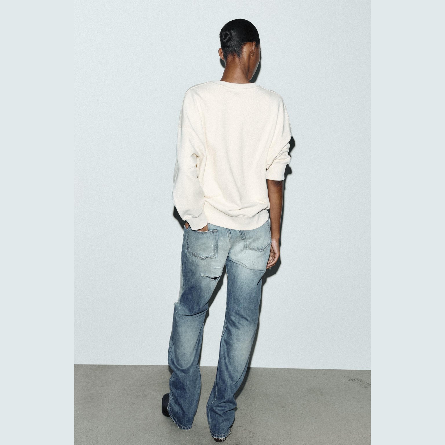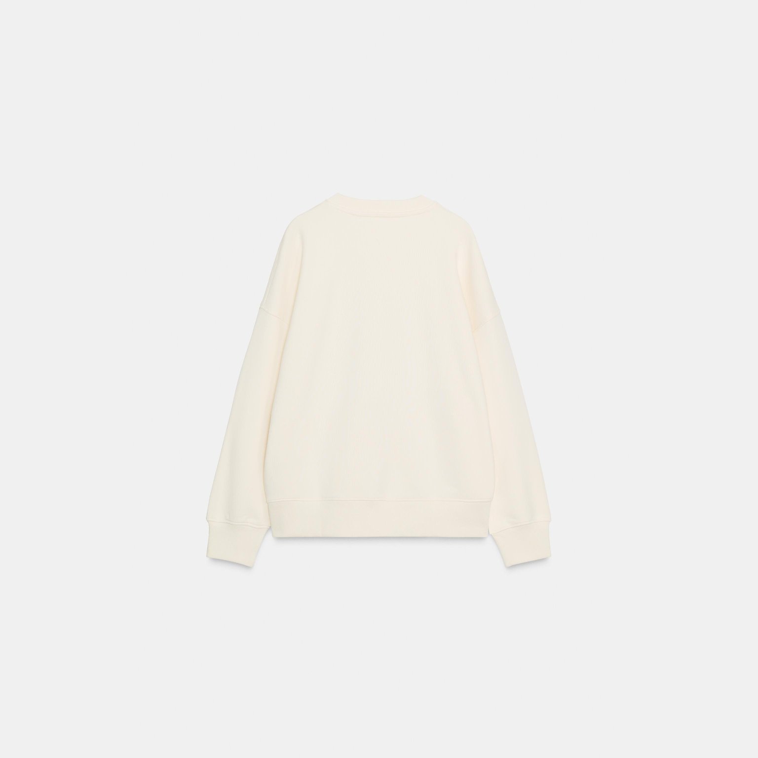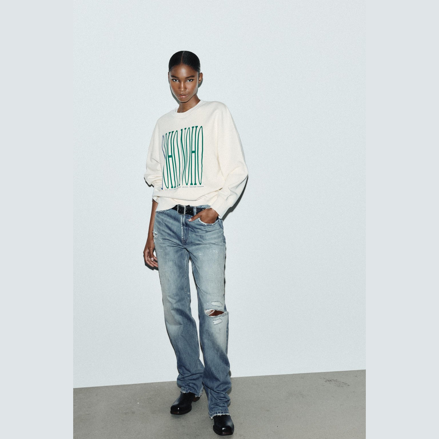 سويتشيرت مريح بخامة قطنية ناعمة وتصميم كلاسيكي يأتي بياقة مستديرة وأكمام طويلة، مع سلوغان أمامي متباين يمنح لمسة عصرية بسيطة، وأطراف محبوكة تضيف ثباتًا وأناقة يومية مناسبة للإطلالات الكاجوال.
