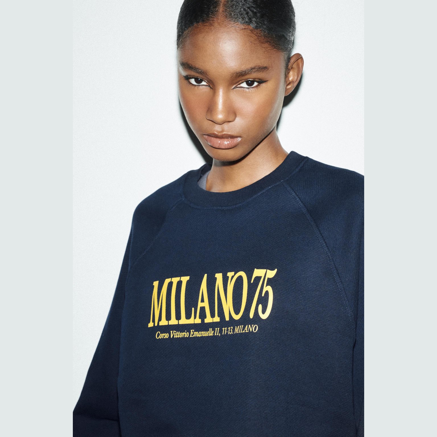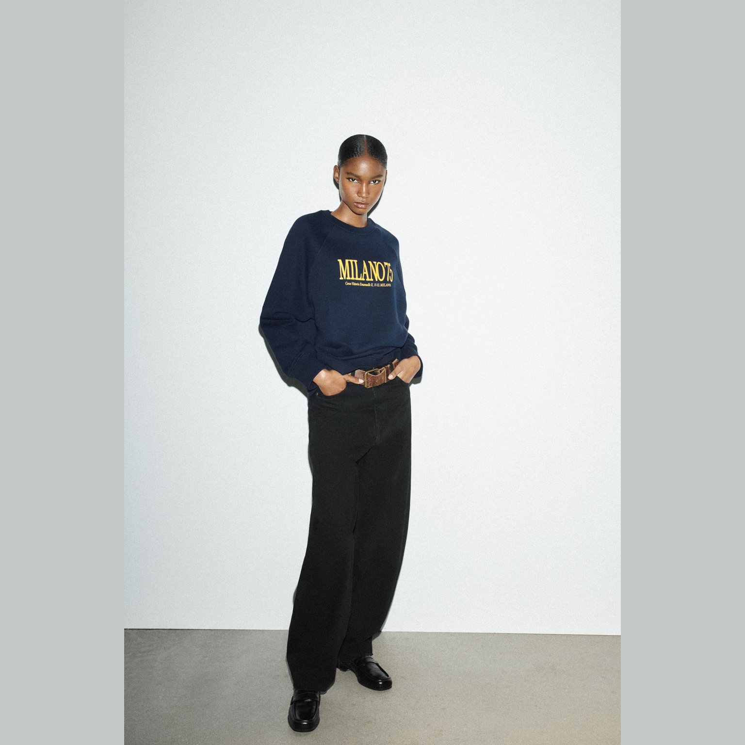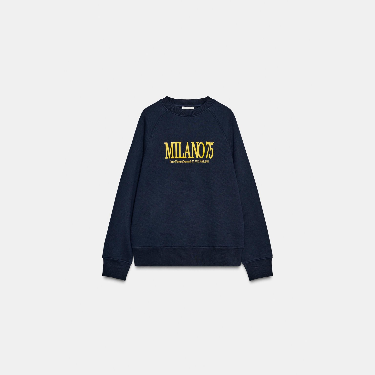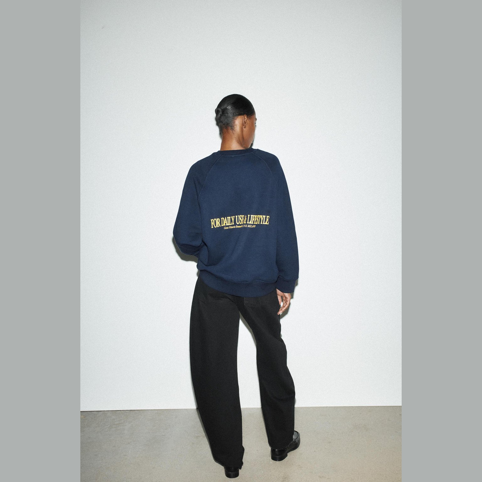 سويتشيرت مريح بخامة قطنية ناعمة وتصميم كلاسيكي يأتي بياقة مستديرة وأكمام طويلة، مع سلوغان أمامي متباين يمنح لمسة عصرية بسيطة، وأطراف محبوكة تضيف ثباتًا وأناقة يومية مناسبة للإطلالات الكاجوال.