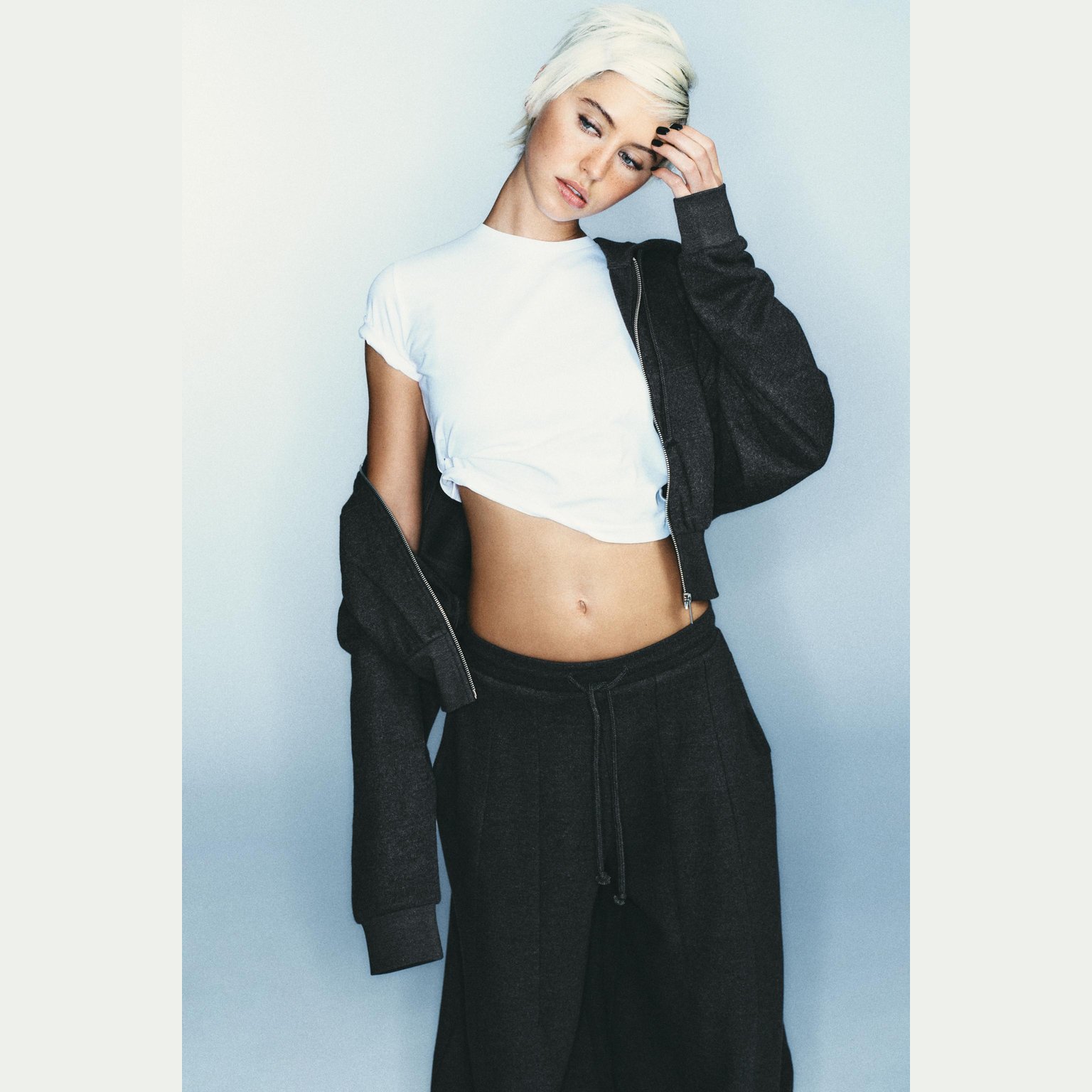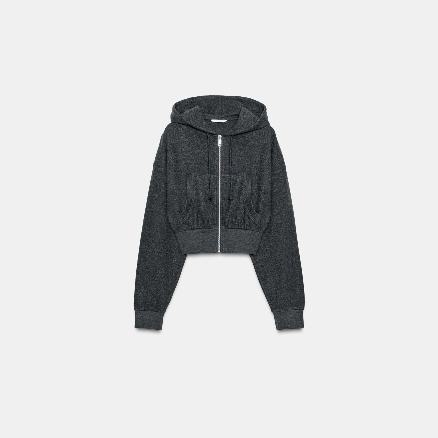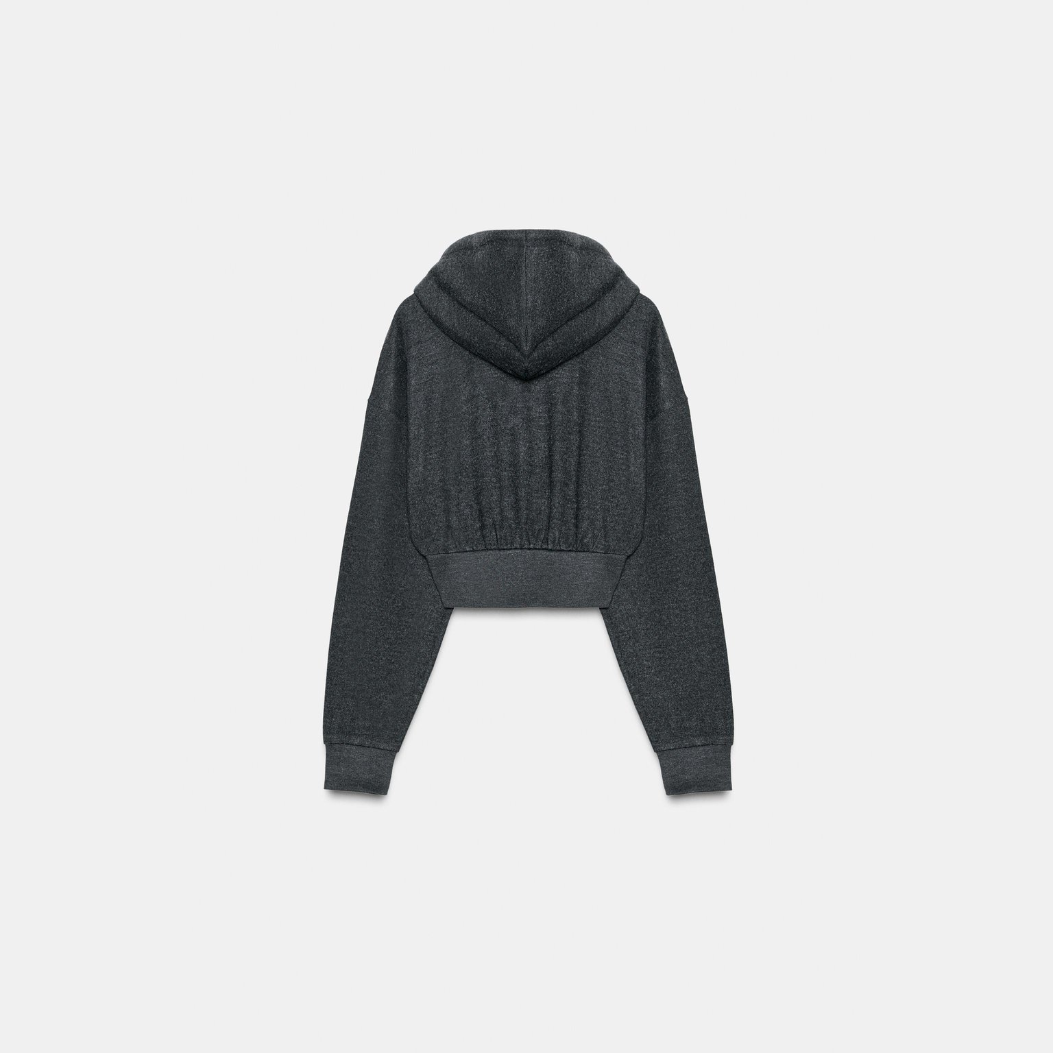 هودي قصير بتصميم عصري يأتي بقبعة قابلة للتعديل وأكمام طويلة مع أطراف محبوكة، يتميز بسحاب أمامي كامل وجيب كانغارو عملي، إضافة إلى قصّة قصيرة تمنح مظهرًا شبابيًا مناسبًا للإطلالات اليومية والكاجوال.