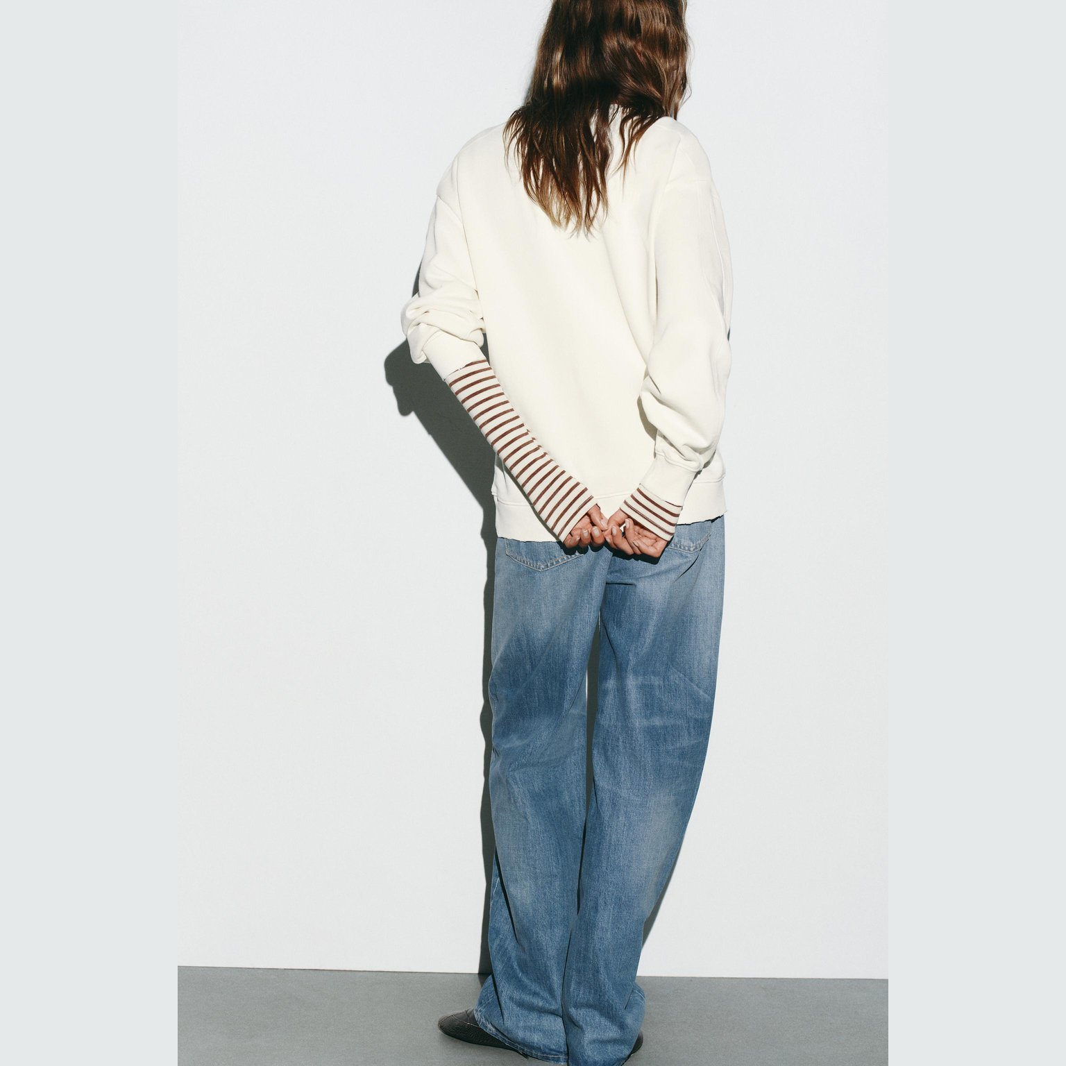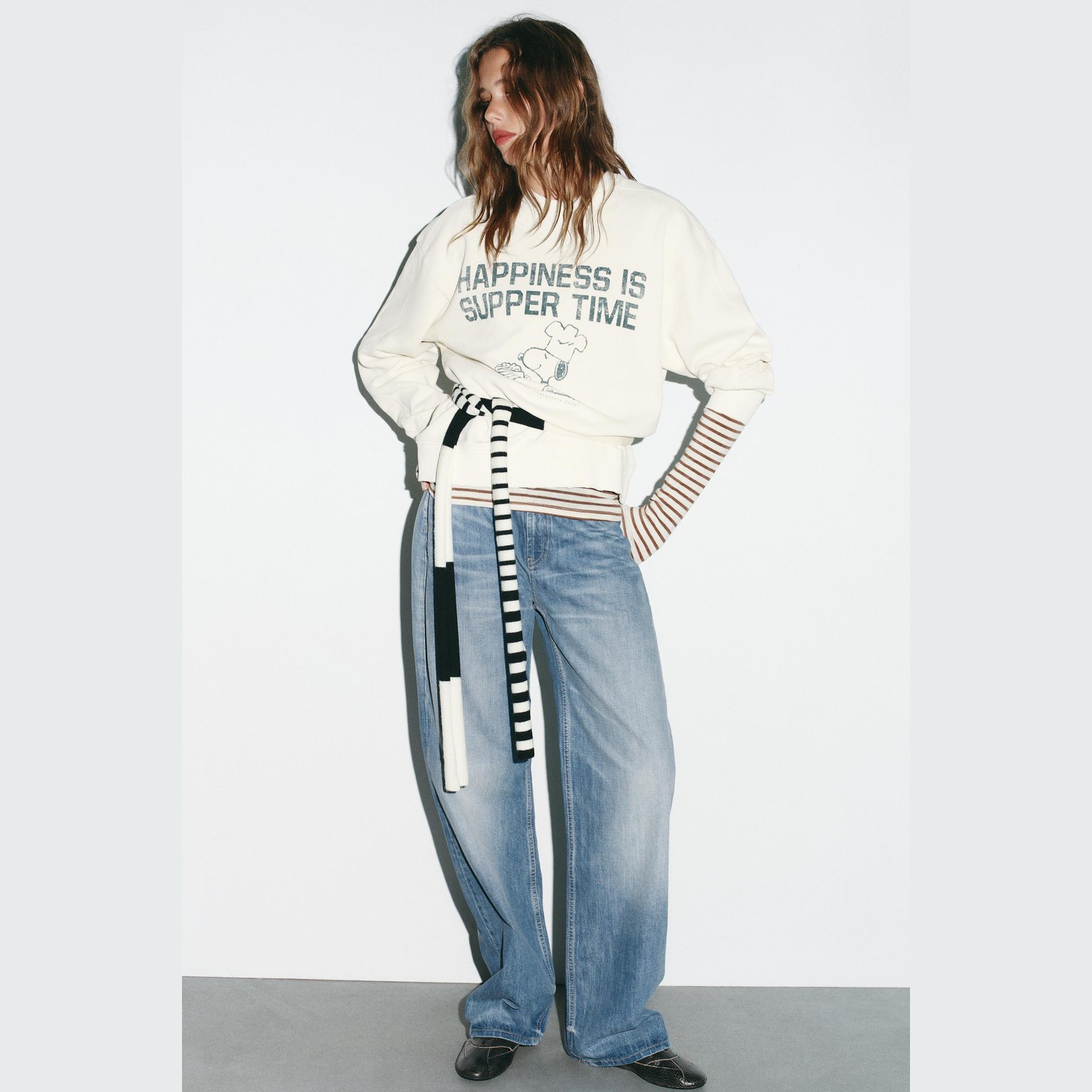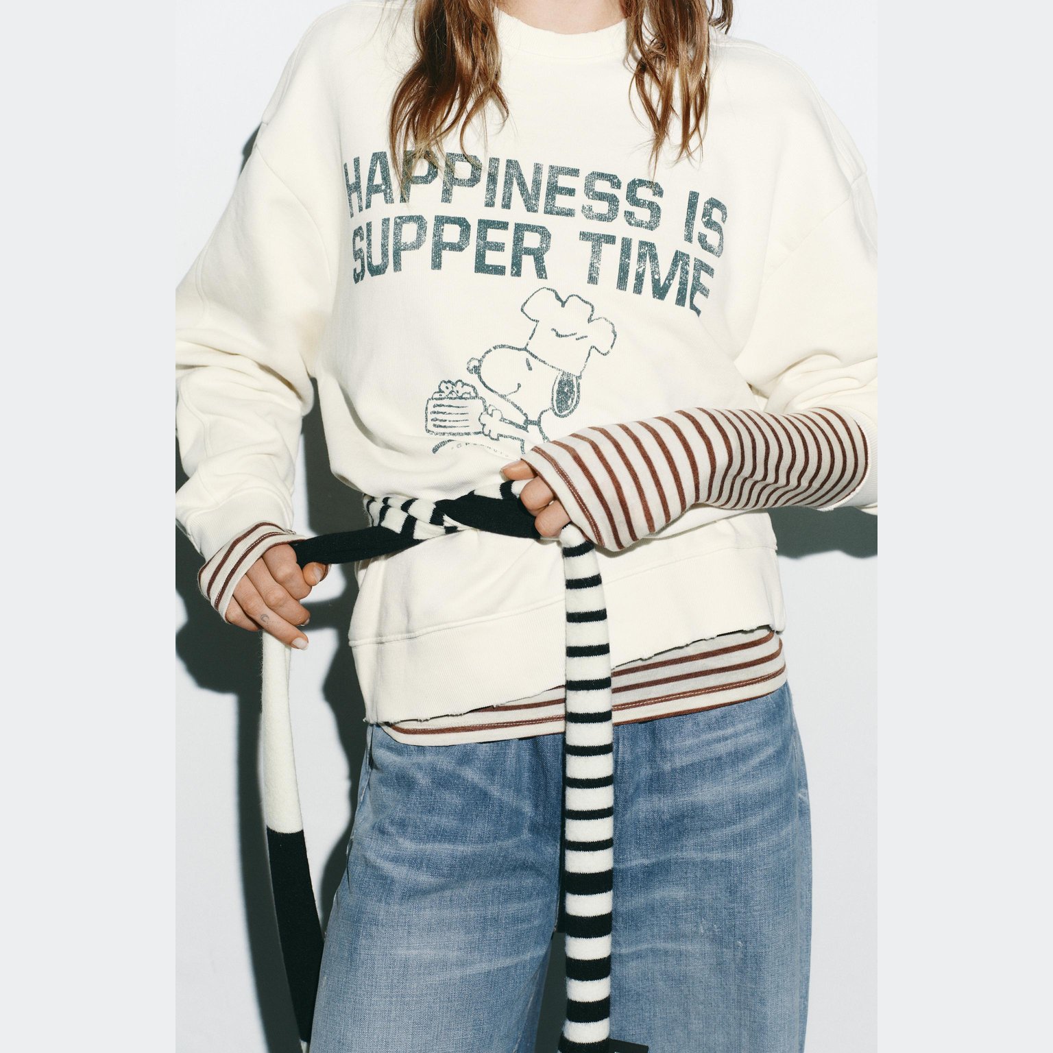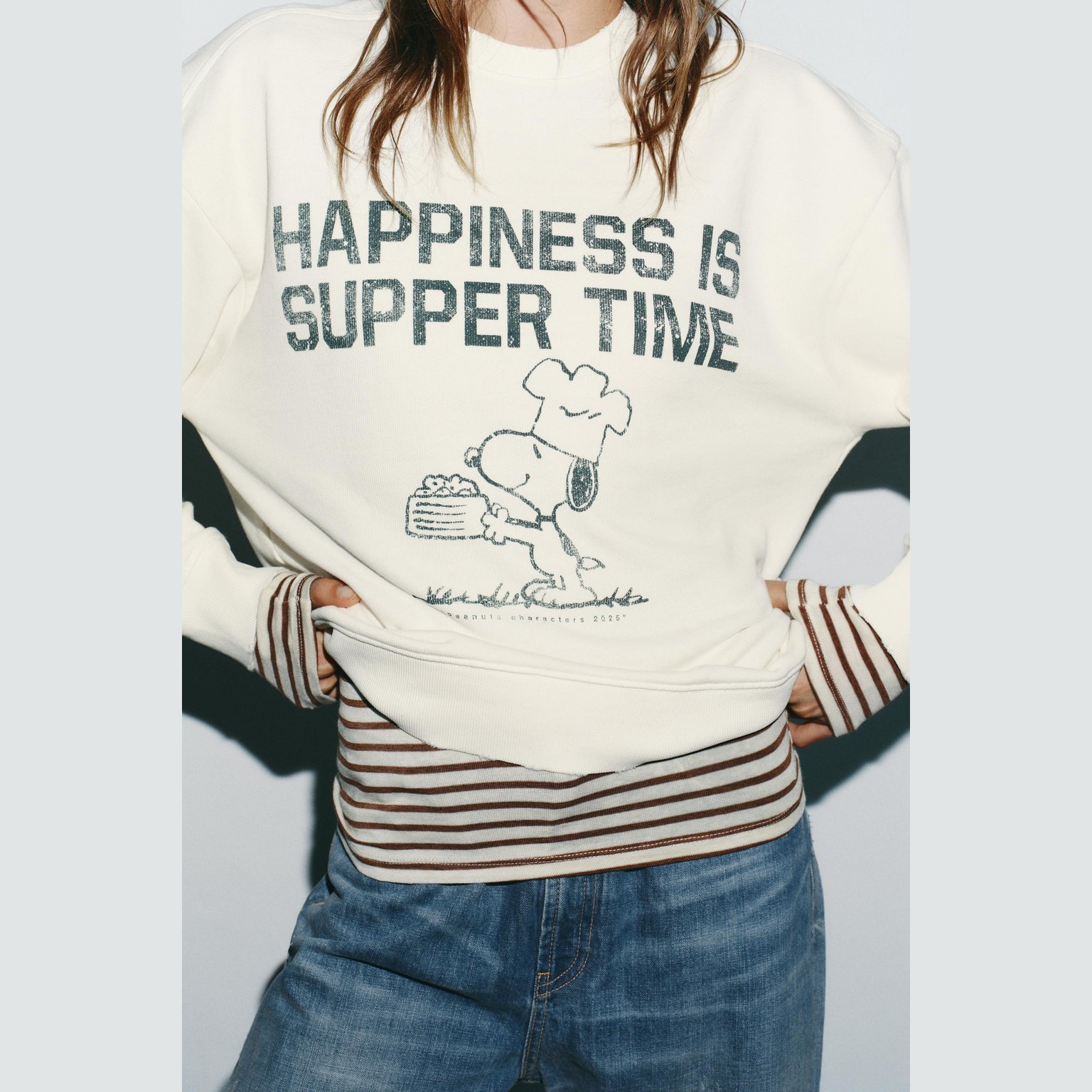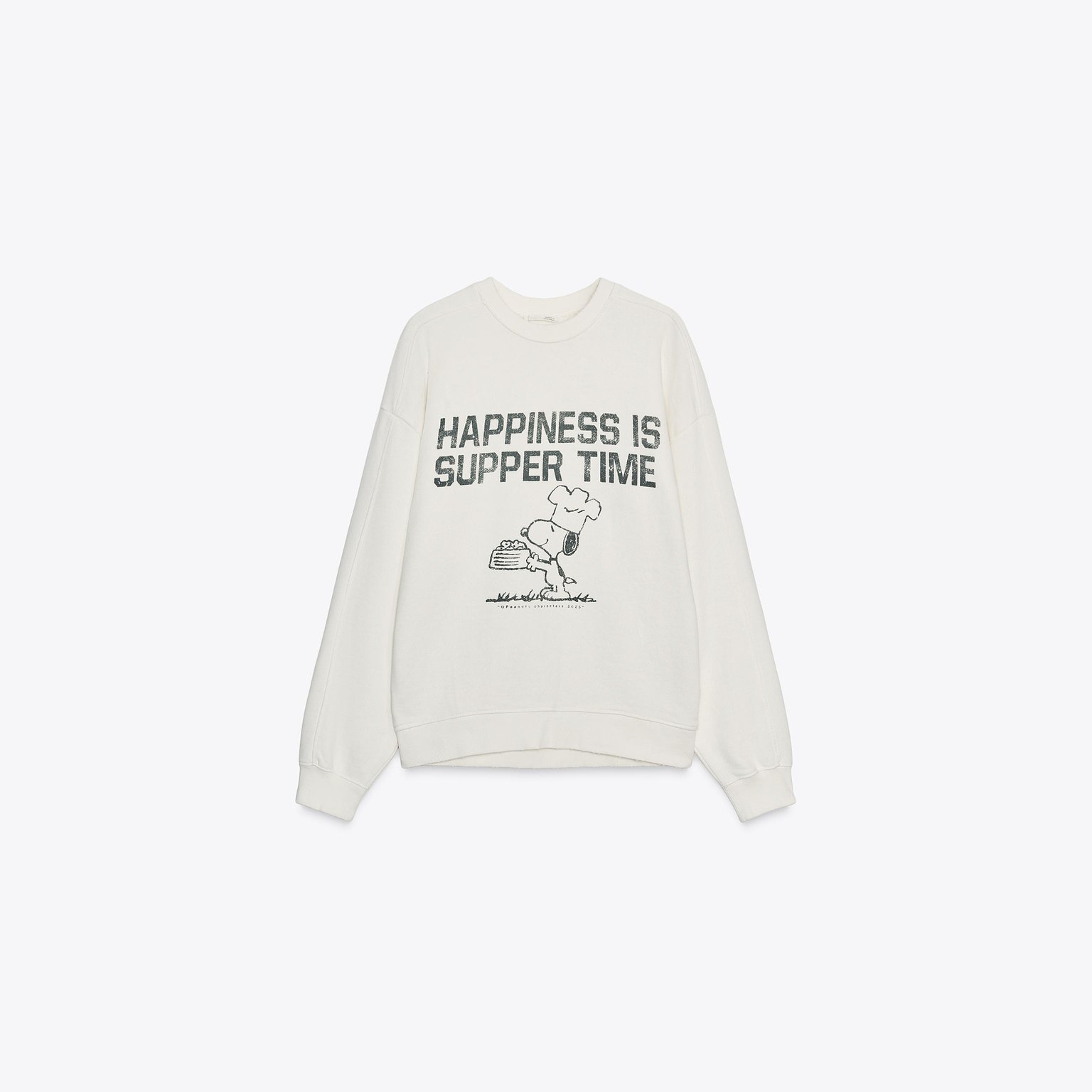 سويتشيرت مريح بخامة قطنية ممزوجة بتصميم كلاسيكي يأتي بياقة مستديرة وأكمام طويلة مع أطراف محبوكة، يتميز بتفصيلة غسيل تمنح مظهرًا عصريًا، مع طبعة شخصية Snoopy من مجموعة Peanuts™ تضيف لمسة مرحة مناسبة للإطلالات اليومية والكاجوال.