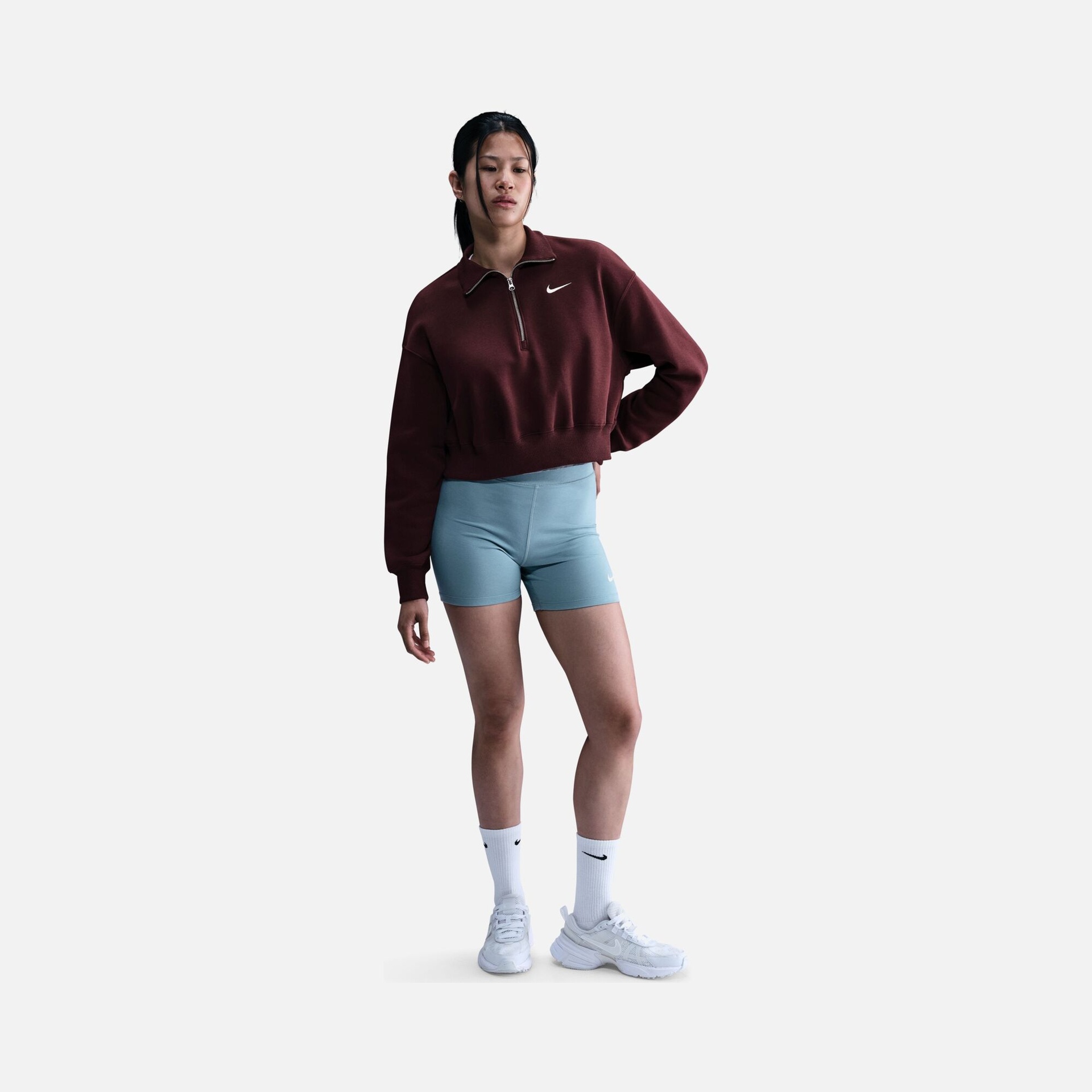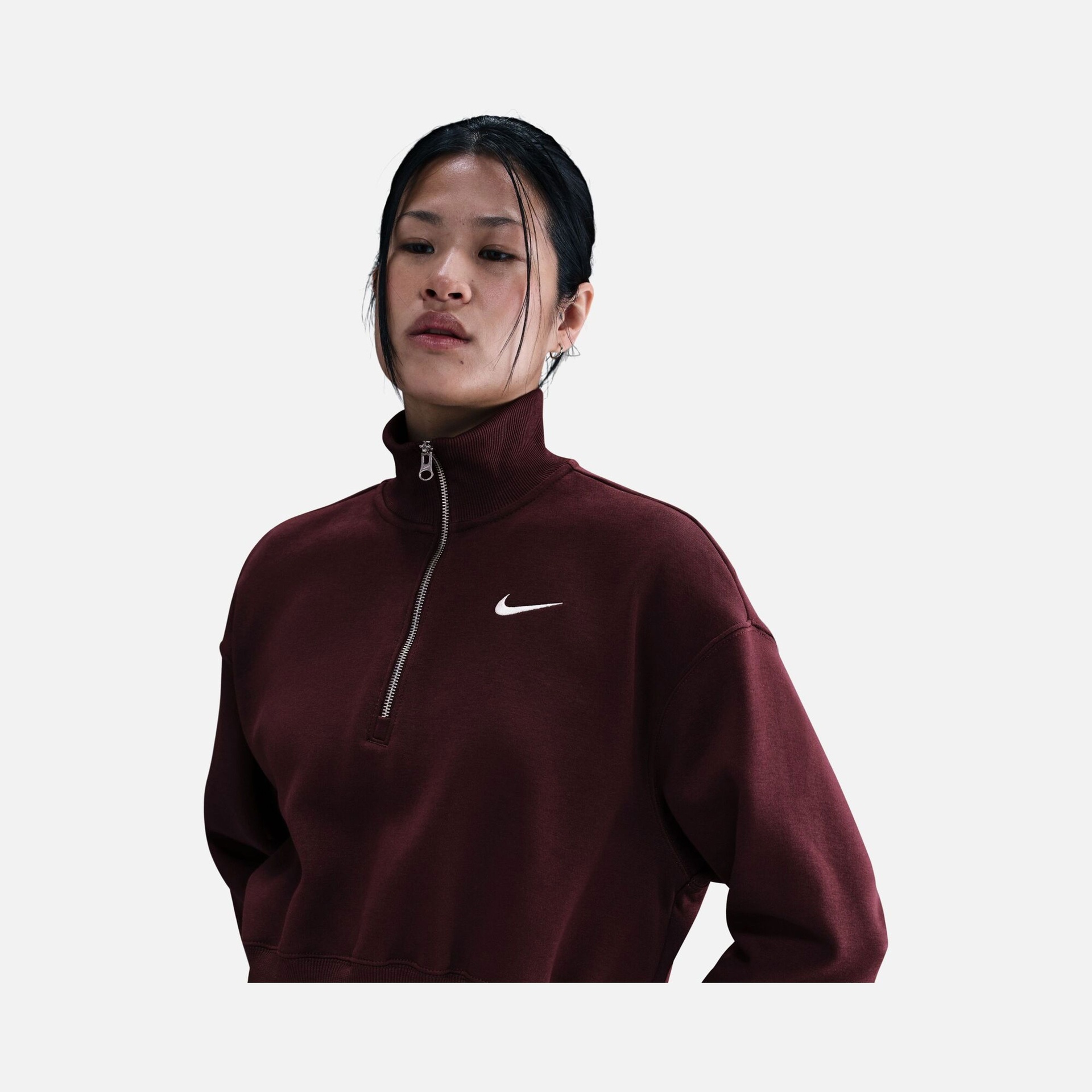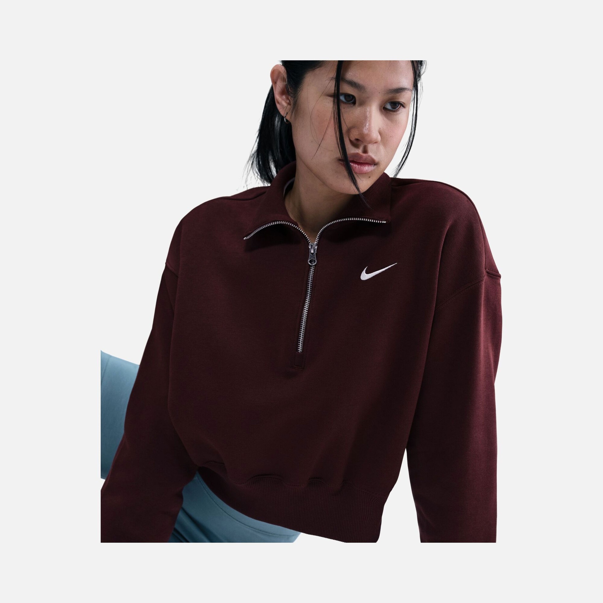 تألقي بمظهر عصري يجمع بين الراحة الفائقة والأناقة الرياضية مع سويت شيرت نايكي سبورتس وير فينكس فليس. يتميز هذا التصميم بقصة "Oversized" الواسعة مع طول "Crop" القصير، مما يمنحكِ إطلالة جريئة ومريحة في آن واحد. بفضل لمساته الكلاسيكية وتفاصيله المبتكرة مثل السحاب النصفي والأكتاف المنسدلة، يعد هذا السويت شيرت الخيار الأمثل لمن تبحث عن الدفء والتميز في إطلالاتها اليومية.
