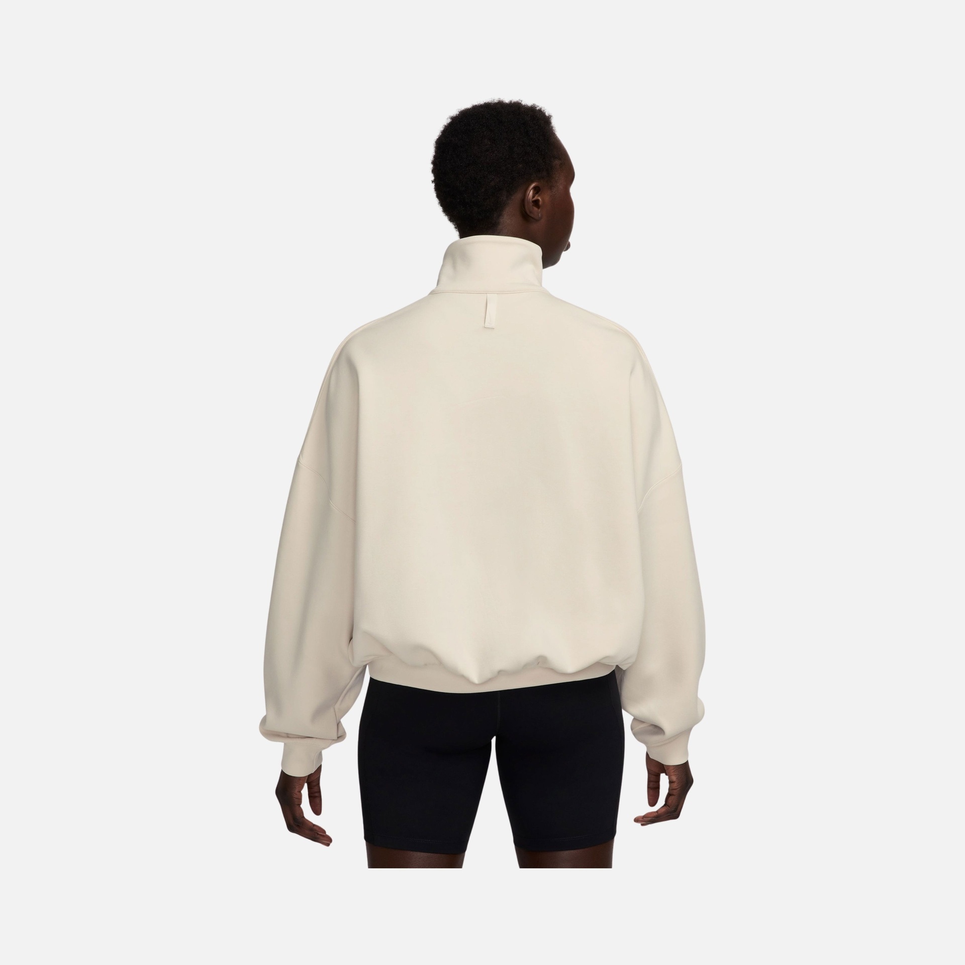 • تصميم الياقة: ياقة مرتفعة مزودة بسحاب نصفي (Half-Zip) لسهولة الارتداء والتهوية المخصصة.