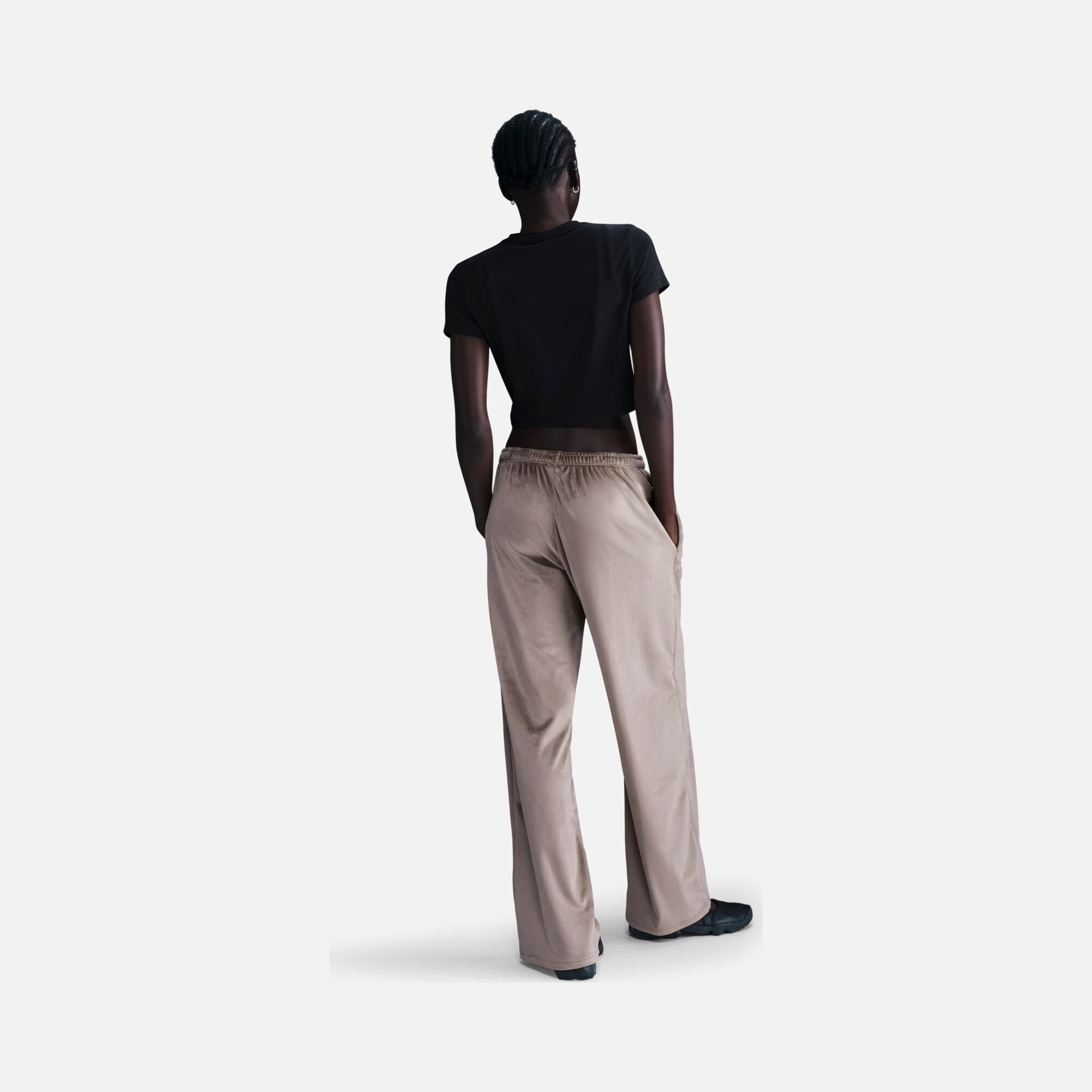 • القصة: قصة ضيقة (Slim Fit) وتصميم قصير (Cropped Length).