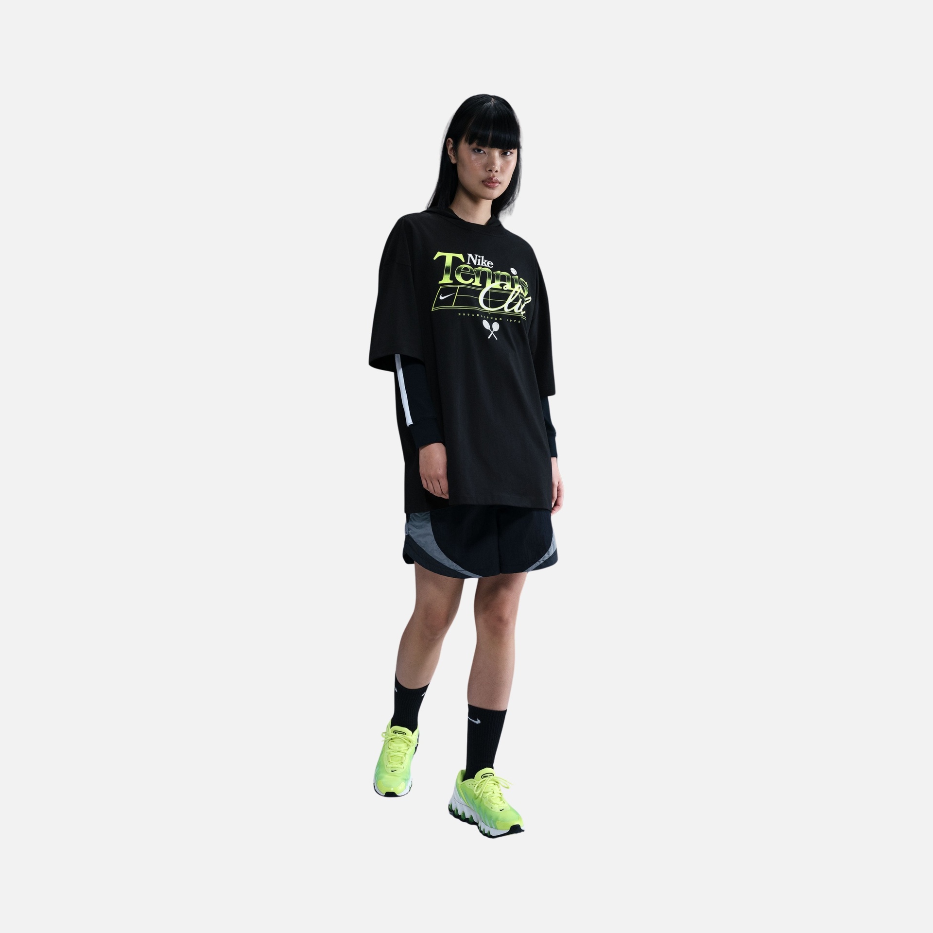اجمعي بين الأناقة العصرية والراحة الفائقة مع تيشيرت "Nike Sportswear" النسائي الذي يجسد روح التجدد في إطلالتك اليومية. يأتي هذا التصميم بلمسة جمالية فريدة تجمع بين اللون الأسود الكلاسيكي ورسومات "أخضر الفستق" الحيوية، مما يمنحك مظهراً رياضياً جريئاً يلفت الأنظار. بفضل قصته الفضفاضة (Oversized) التي توفر حرية حركة لا مثيل لها، يُعد هذا القطعة الخيار المثالي لمن تبحث عن التميز في أوقات الفراغ أو أثناء الخروجات الكاجوال، حيث يلتقي إرث نايكي الرياضي مع أحدث صيحات الموضة العالمية.