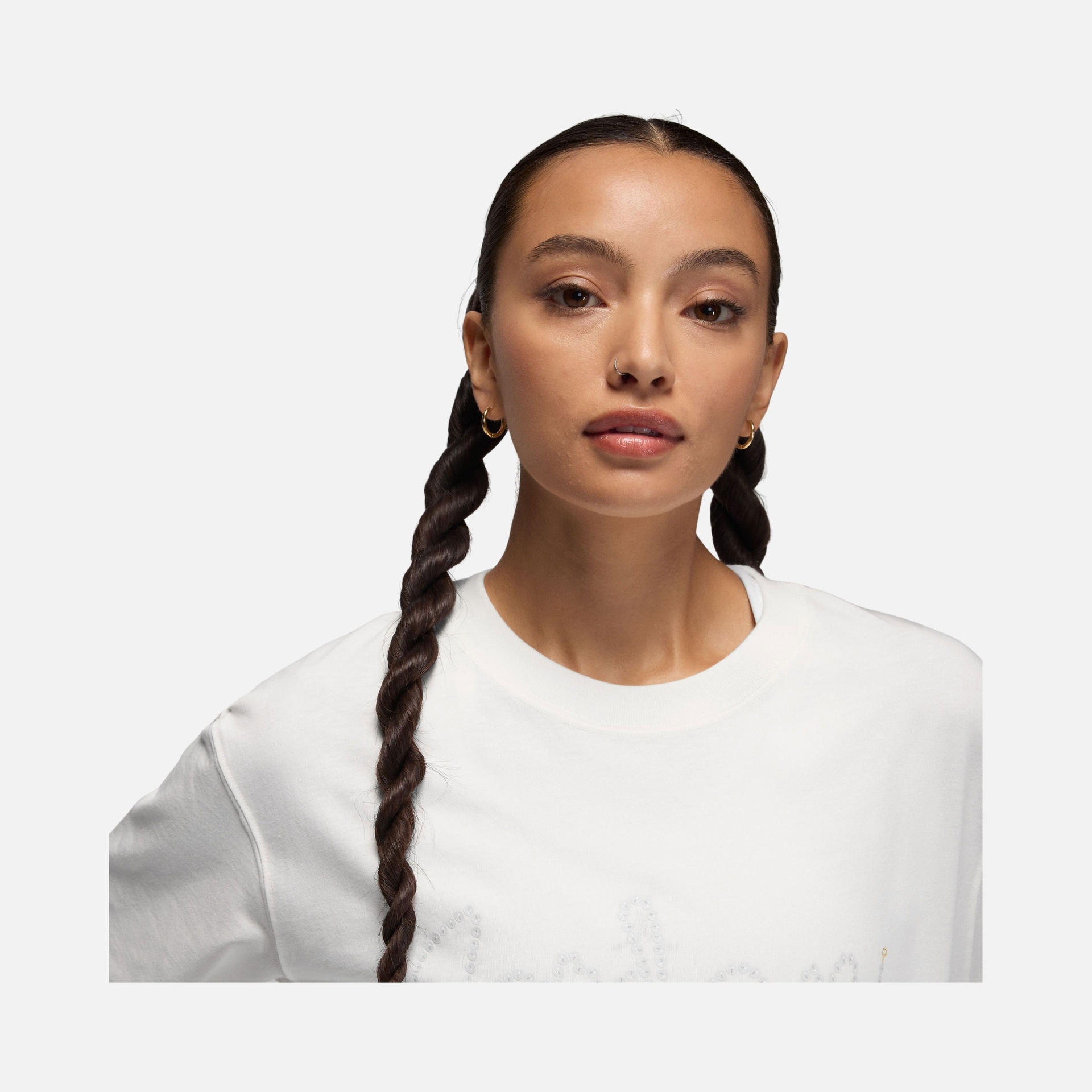 اجذبي الأنظار بإطلالة تجمع بين عراقة ملاعب كرة السلة وحداثة أزياء الشارع مع تيشيرت "جوردن بروكلين" النسائي. صُمم هذا الإصدار ليمنحكِ توازناً مثالياً بين الراحة الفائقة والمظهر العصري، حيث يتألق بشعار "Jumpman" الأيقوني بلمسات ذهبية فاخرة تضفي طابعاً من الرقي على ملابسك اليومية. سواء كنتِ تنسقينه مع بنطال رياضي أو جينز، فإن هذا التيشيرت هو القطعة الأساسية التي تمنحكِ الثقة والحرية في الحركة طوال اليوم.