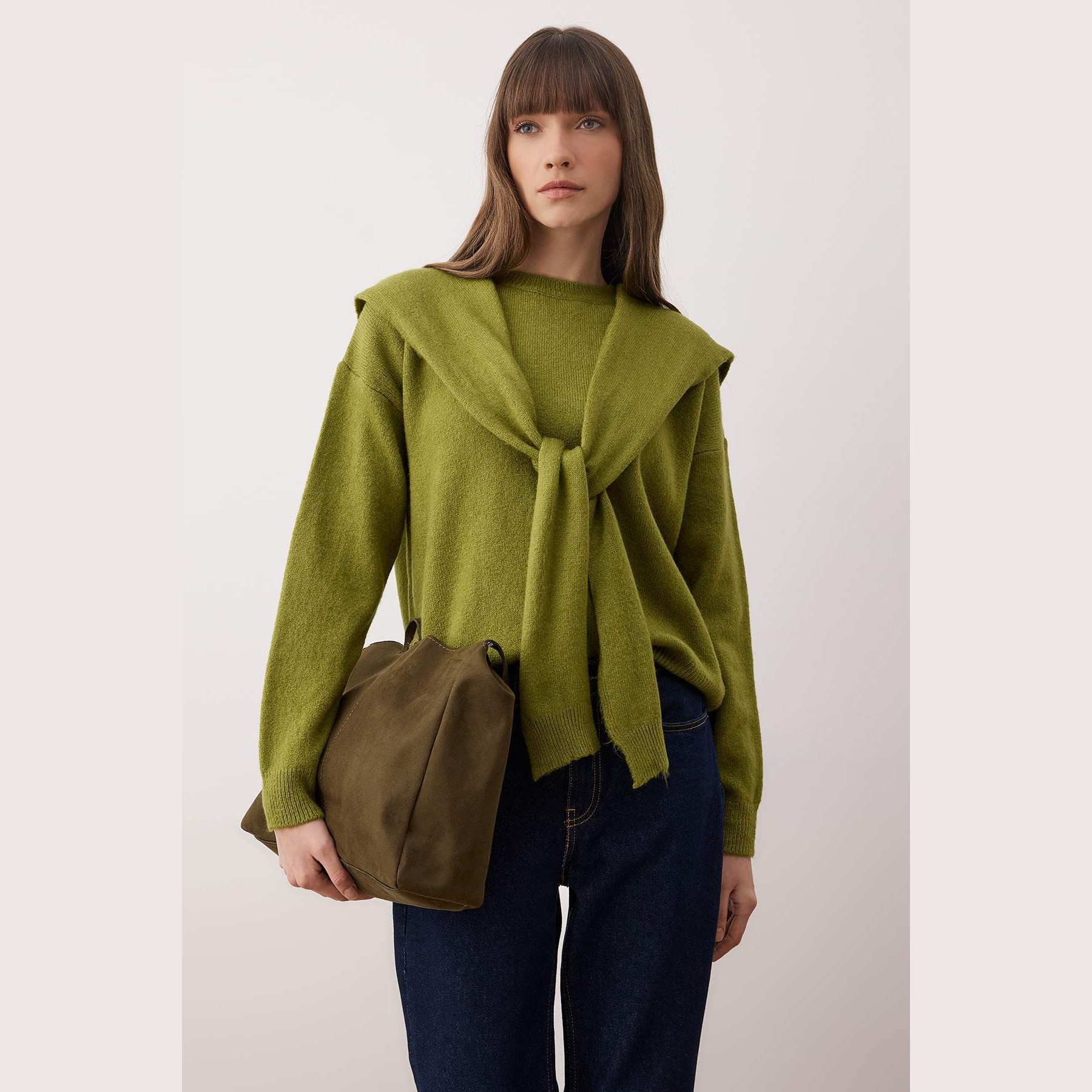 • مرونة التنسيق: لونها الزيتي المميز يجعلها سهلة التنسيق مع بناطيل الجينز أو الليجنز لإطلالة يومية كاجوال بامتياز.