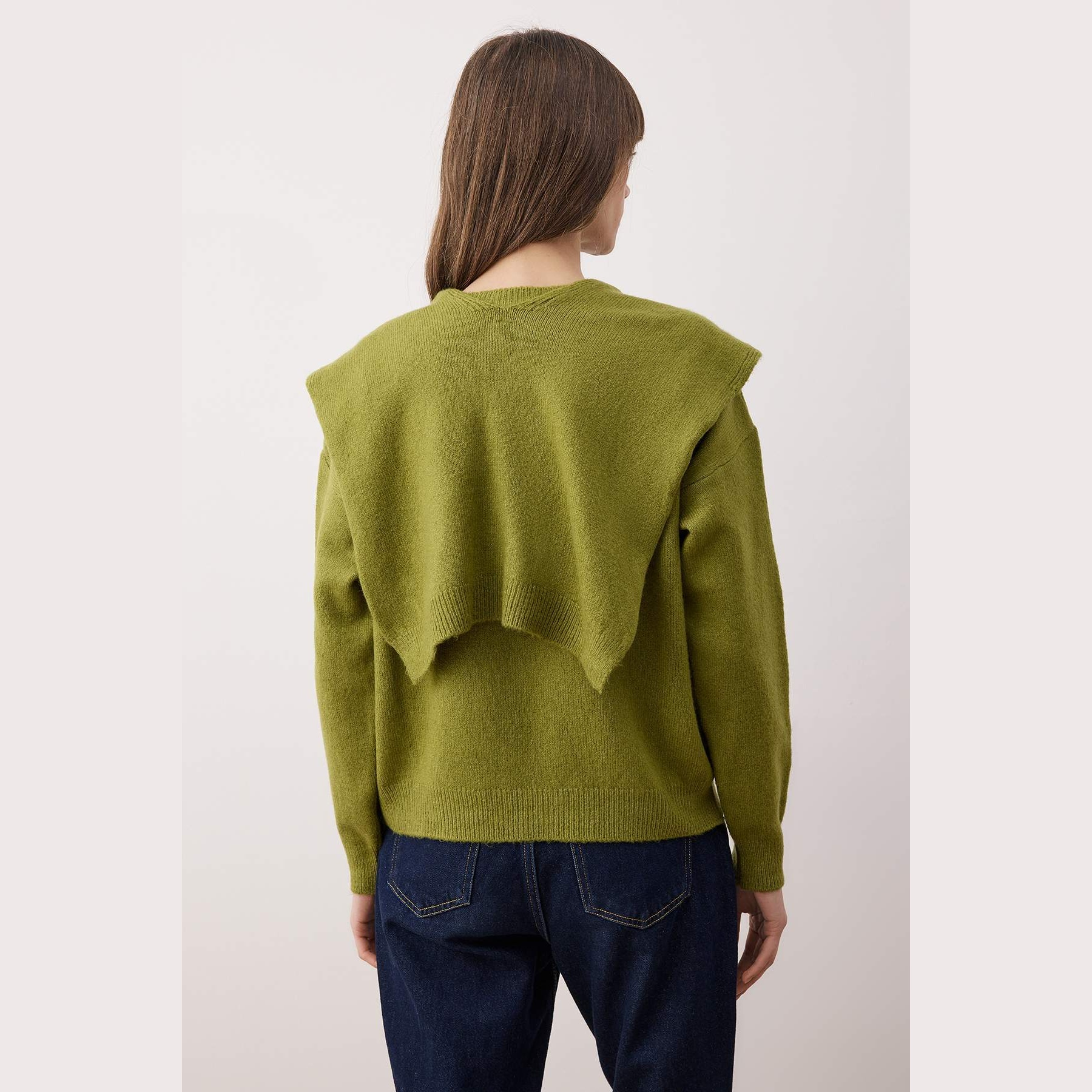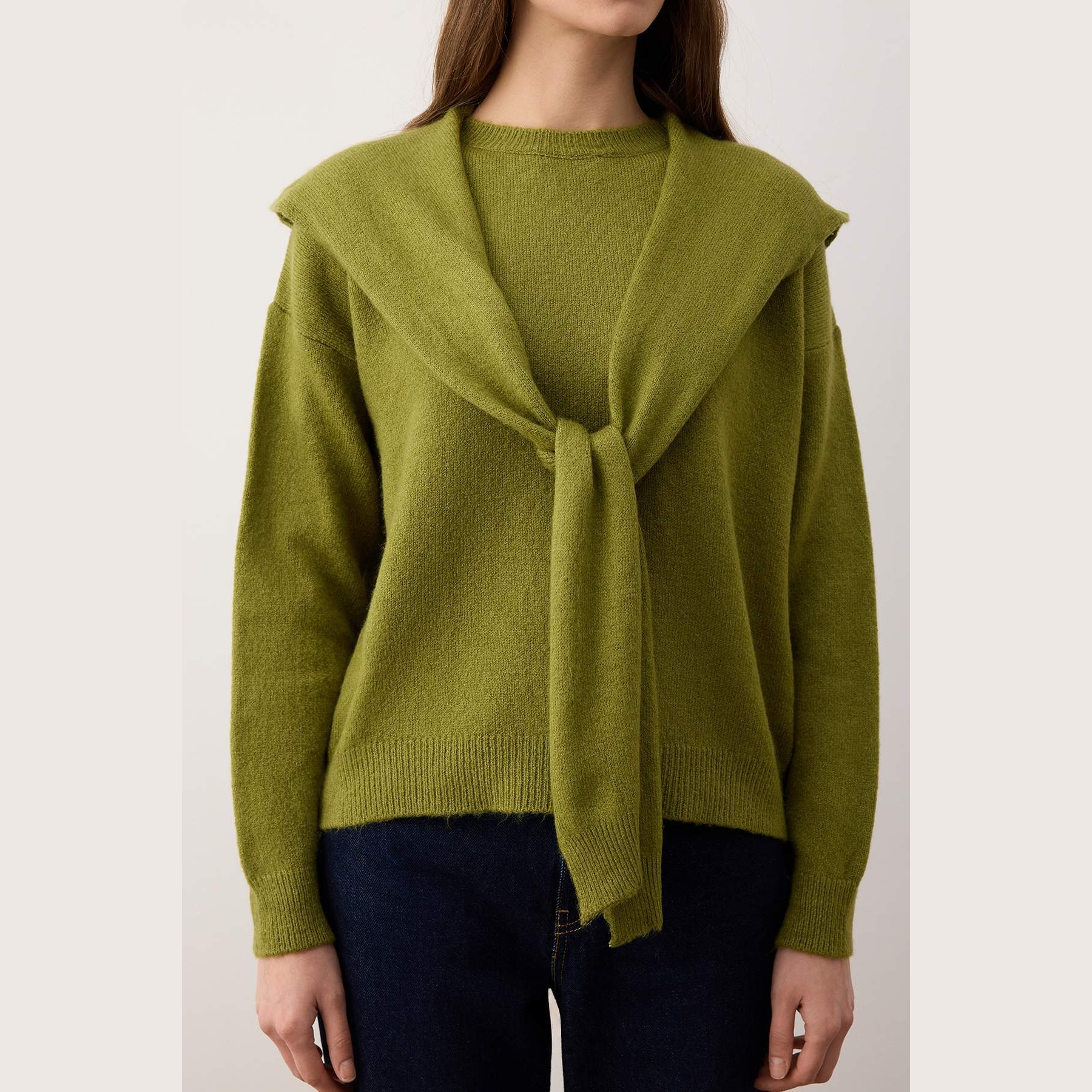 • تصميم 2 في 1: تشتمل الكنزة على شال متناسق يمنحكِ خيارات تنسيق متعددة ودفئاً مضاعفاً حول الرقبة.