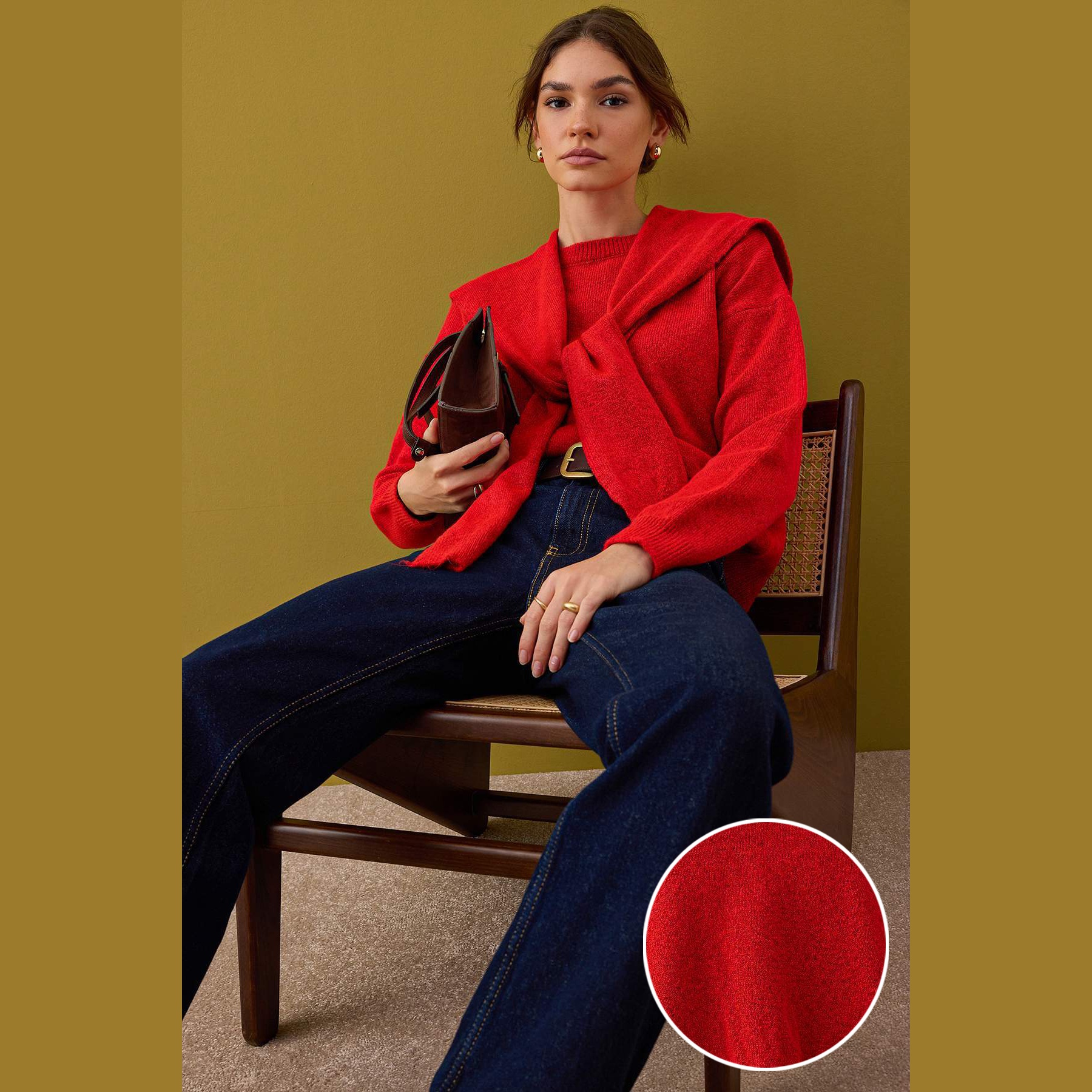 • اللون الأحمر الغني يسهل تنسيقه مع الجينز أو التنانير الشتوية لإطلالة متألقة.