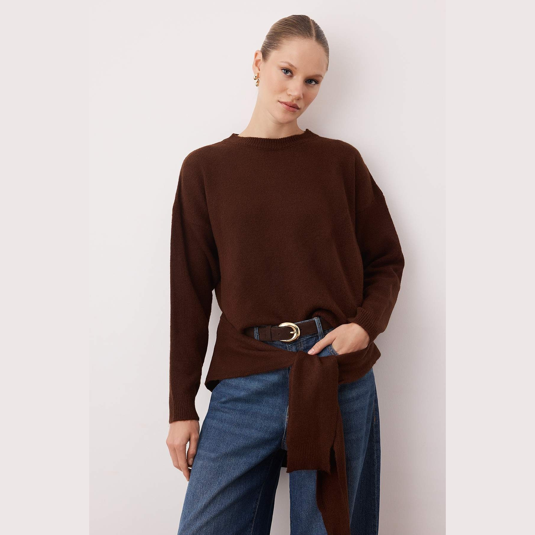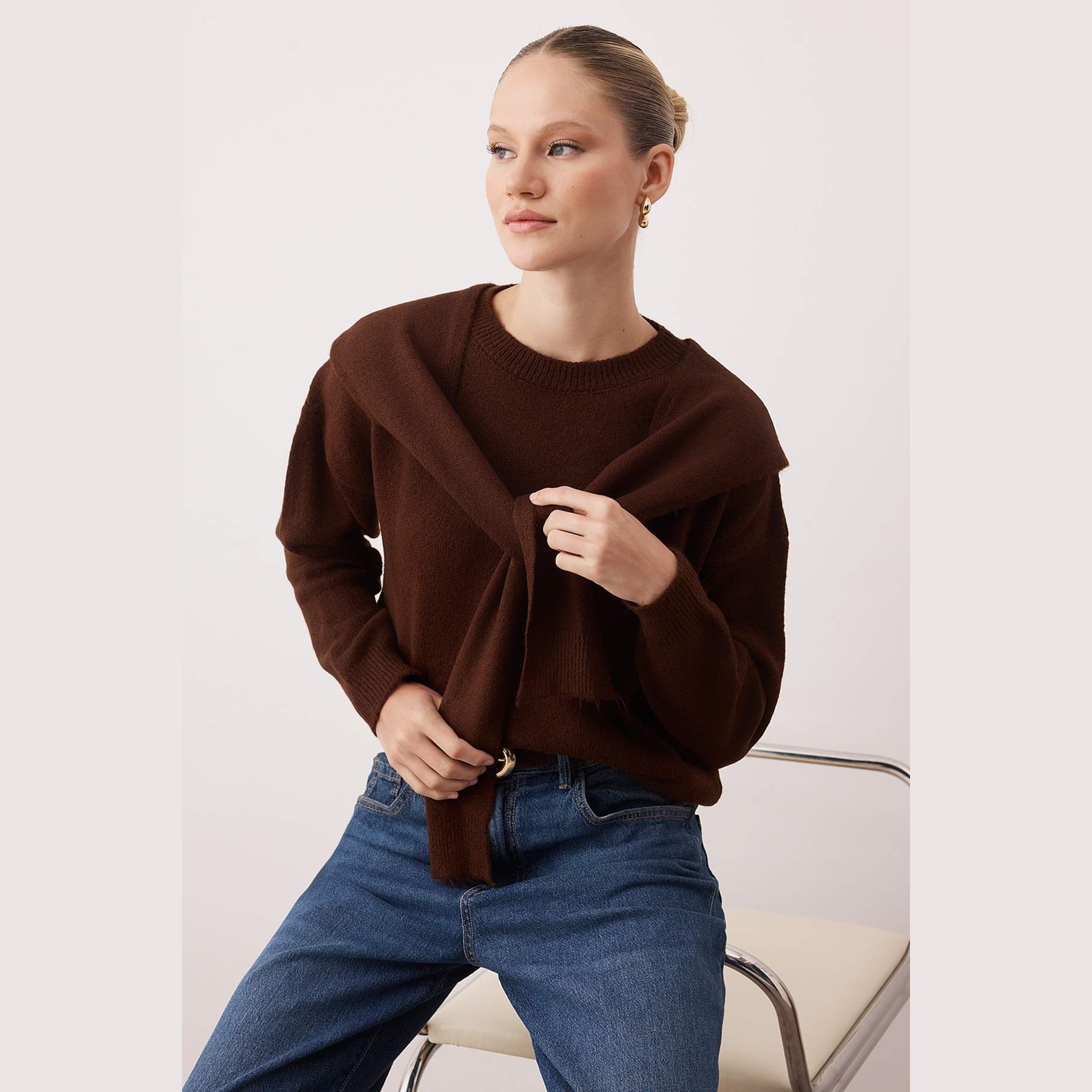 استمتعي بالدفء والراحة المطلقة مع هذه الكنزة النسائية من "تريند يول ميلا"، المصممة بلمسة عصرية تجمع بين الأناقة والعملية. تتميز هذه القطعة بقصتها الفضفاضة (Oversize) التي تمنحك حرية الحركة ومظهراً "كاجوال" جذاباً، بالإضافة إلى ملمسها الناعم الذي يداعب بشرتك بلطف في الأيام الباردة. سواء كنتِ في نزهة يومية أو لقاء صديقات، فإن لونها البني الغني وتصميمها المبتكر المزود بشال مدمج يضفيان لمسة من التميز على إطلالتك الشتوية.