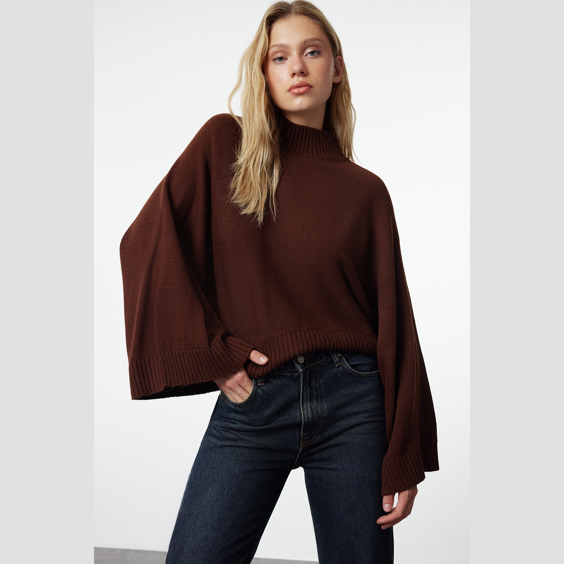 استقبلي فصول الشتاء والخريف بأناقة دافئة ولمسة عصرية لا تقاوم مع كنزة "ترينديول ميلا" المحبوكة. تتميز هذه القطعة بلونها البني الغني الذي يعكس دفء الموسم، وتصميمها الفريد بأكمام إسبانية واسعة تمنحكِ حضوراً لافتاً ومميزاً. صُممت بقصة واسعة (Oversized) لتمنحكِ الراحة المطلقة وحرية الحركة دون المساومة على الأناقة، مما يجعلها قطعة أساسية في خزانة ملابسكِ لإطلالة يومية راقية ومريحة.