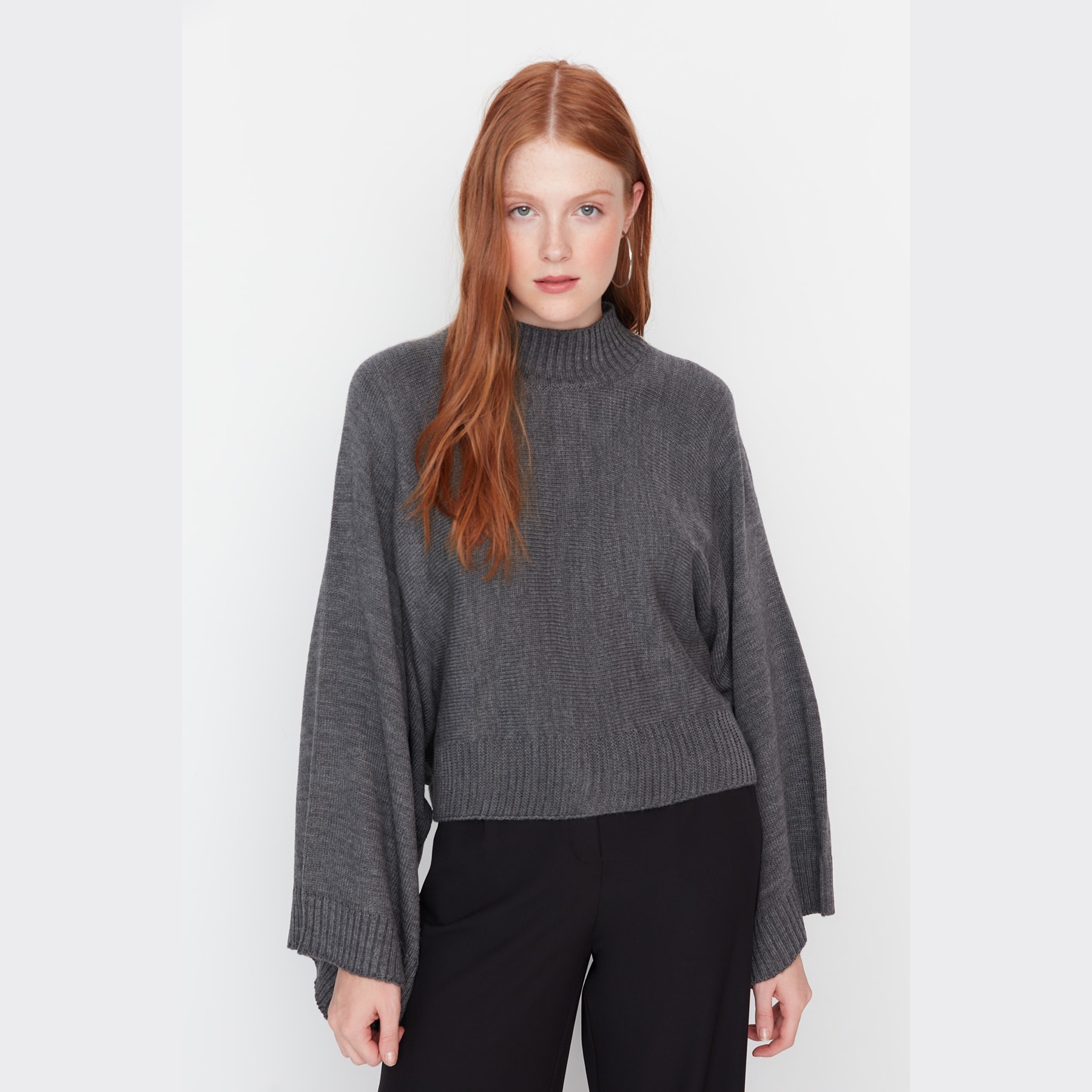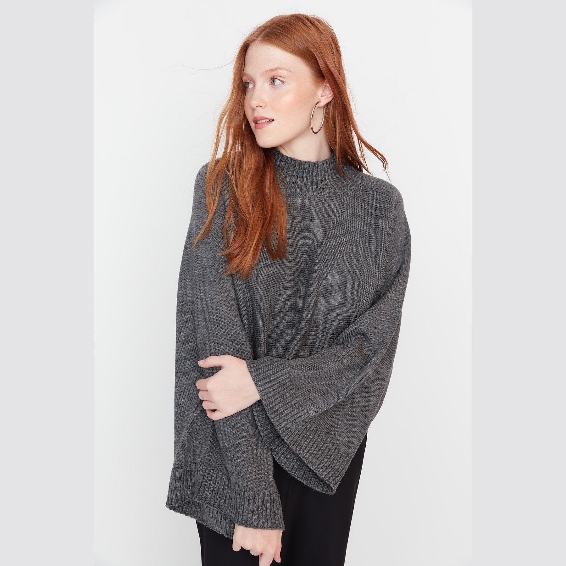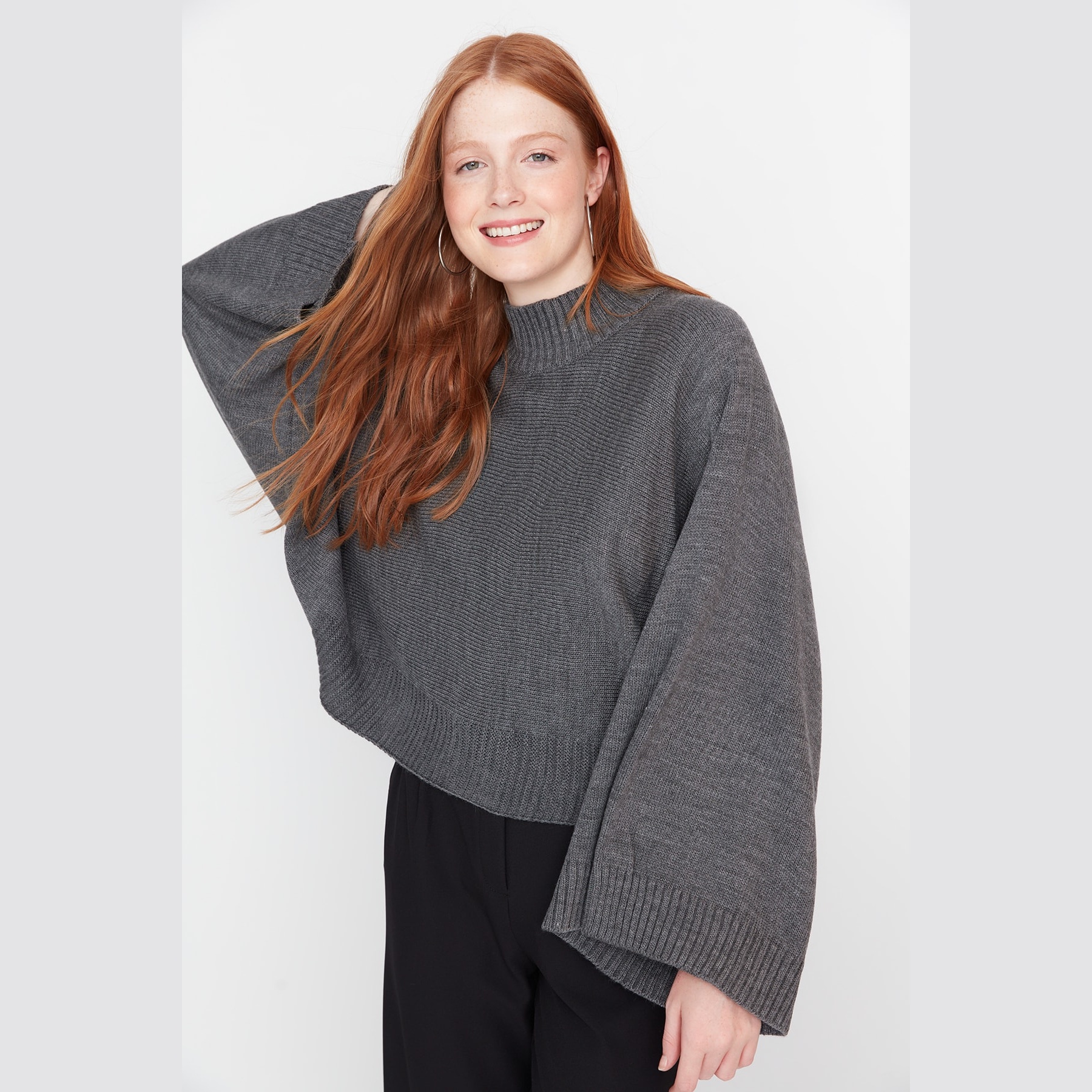 تألقي بإطلالة شتوية تجمع بين الدفء العصري واللمسات الكلاسيكية الفاخرة مع هذه الكنزة التريكو من "ترينديول ميلا". تتميز بتصميمها الفريد الذي يبرز جمال الأكمام الواسعة (Spanish Sleeves) والياقة المرتفعة التي تمنحكِ مظهراً راقياً ومريحاً في آن واحد. بفضل لونها الأنثراسايت (الرمادي الغامق) الجذاب وقصتها الواسعة، تعد هذه القطعة الخيار الأمثل لإطلالة يومية متميزة تعكس ذوقكِ الرفيع في مواكبة أحدث صيحات الموضة.