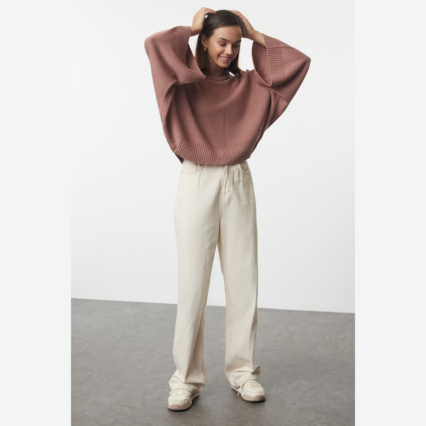 دع الأناقة الدافئة تغمر إطلالتك مع كنزة التريكو من "ترينديول ميلا"، المصممة خصيصاً لتجمع بين الراحة الفائقة واللمسة العصرية المبتكرة. تتميز هذه القطعة بلونها الوردي الهادئ (Rose Pink) وقصتها الواسعة التي تمنحك حرية الحركة، بينما تضفي الأكمام بنمط "إسباني" (جرس) طابعاً أنثوياً فريداً يجعلها الخيار الأمثل لإطلالات الشتاء الراقية، سواء كنتِ في نزهة كاجوال أو لقاء عمل مريح.