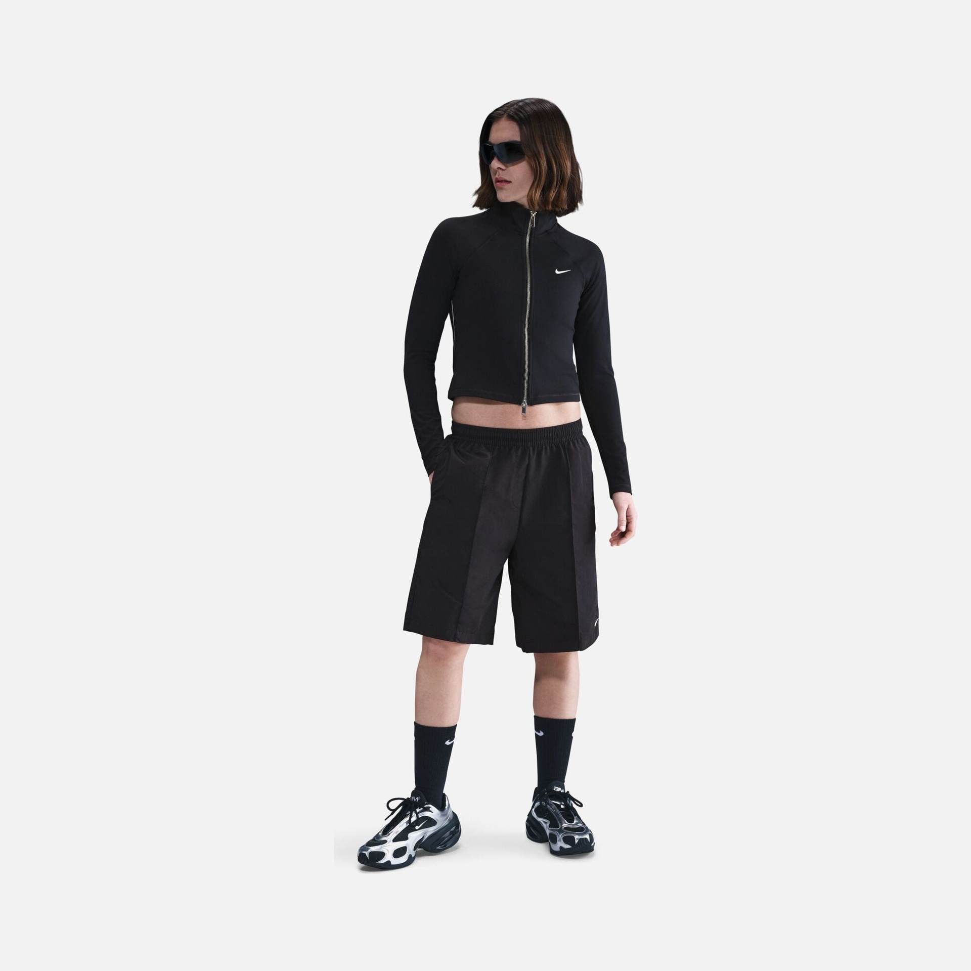 • يبرز شعار نايكي الكلاسيكي (Swoosh) بوضوح ليعكس جودة العلامة التجارية وأصالتها.