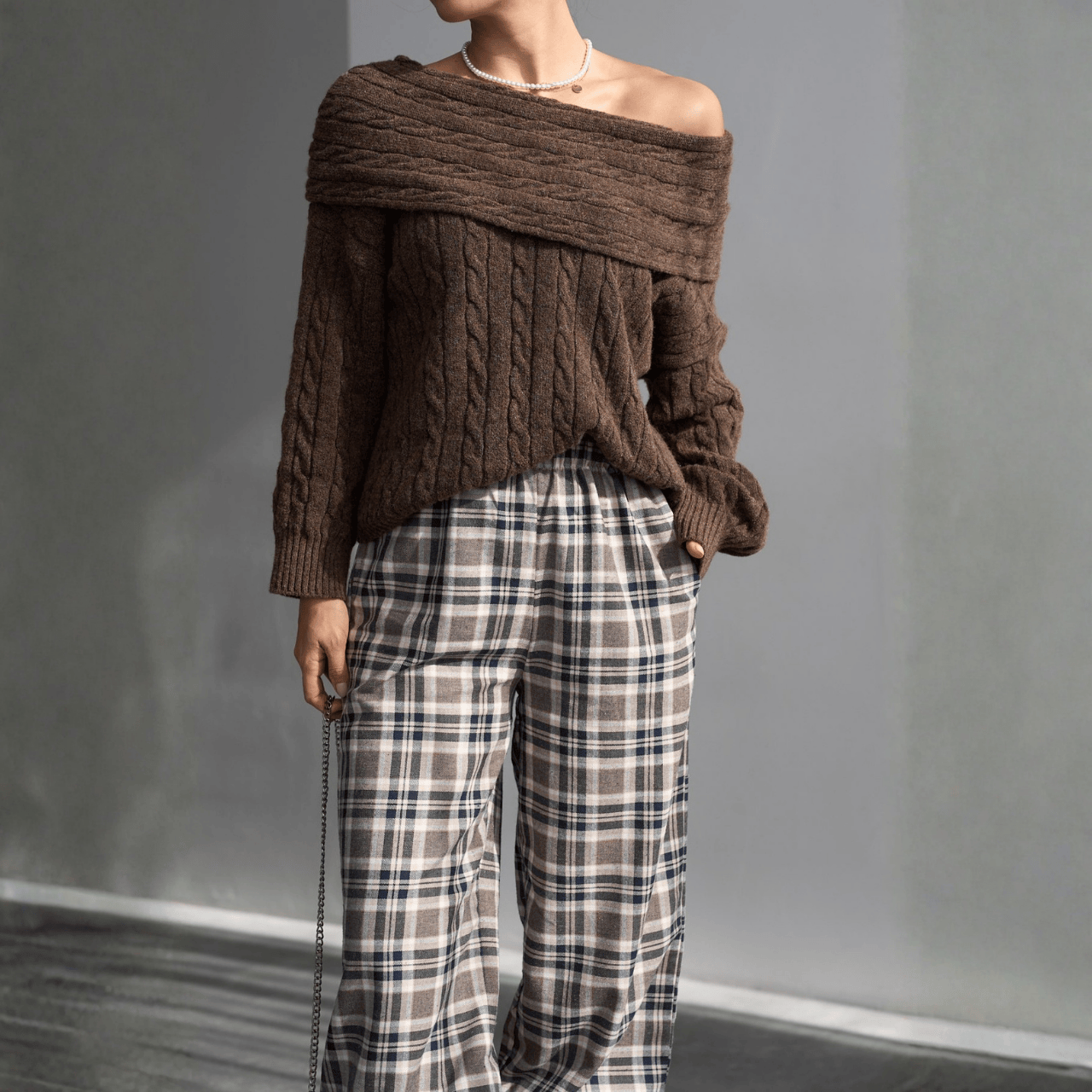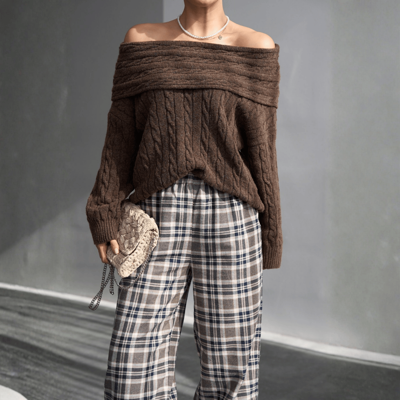 كنزة شتوية أنيقة بتصميم عصري يبرز الأكتاف بأسلوب أنثوي جذاب، مع تفاصيل حياكة بارزة تضيف لمسة فخمة ودافئة. تتميز بياقة عريضة يمكن تنسيقها بعدة طرق لإطلالات مختلفة، ما يجعلها خياراً مثالياً للإطلالات اليومية الراقية خلال الأجواء الباردة، وسهلة التنسيق مع الجينز أو القماش لإطلالة كاجوال أنيقة.