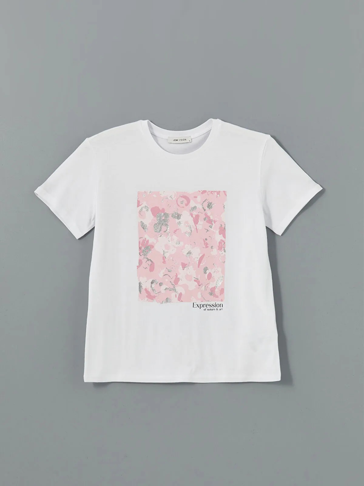تيشيرت نسائي بلون أبيض ناصع، بياقة دائرية قصيرة وأكمام قصيرة، مزين بطبعة أمامية أنيقة، تصميم Regular Fit يمنح حرية حركة وراحة طوال اليوم، وينتمي إلى مجموعة