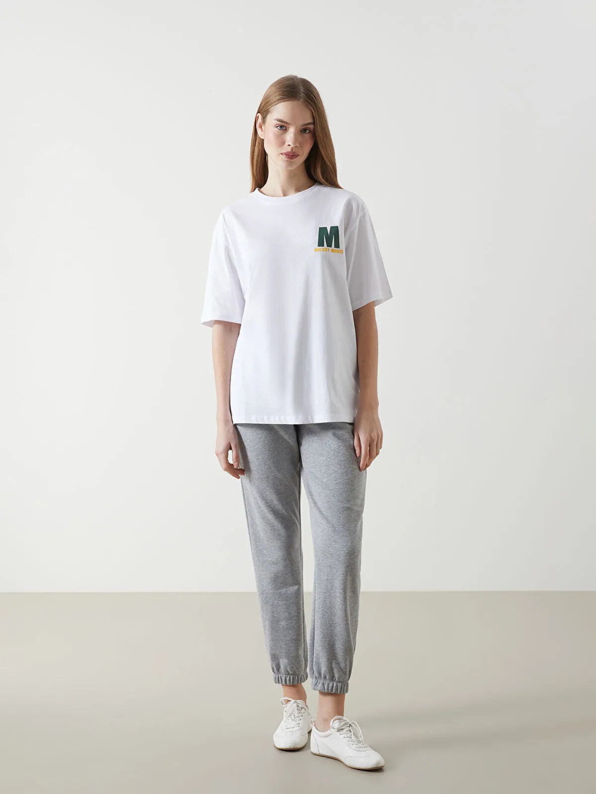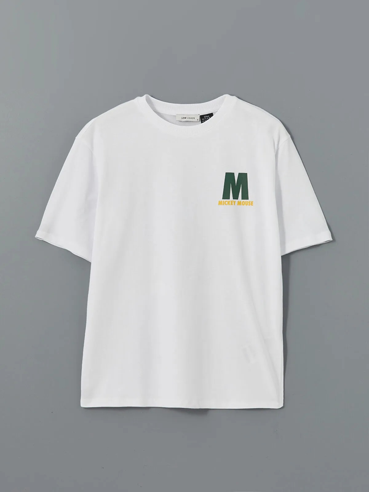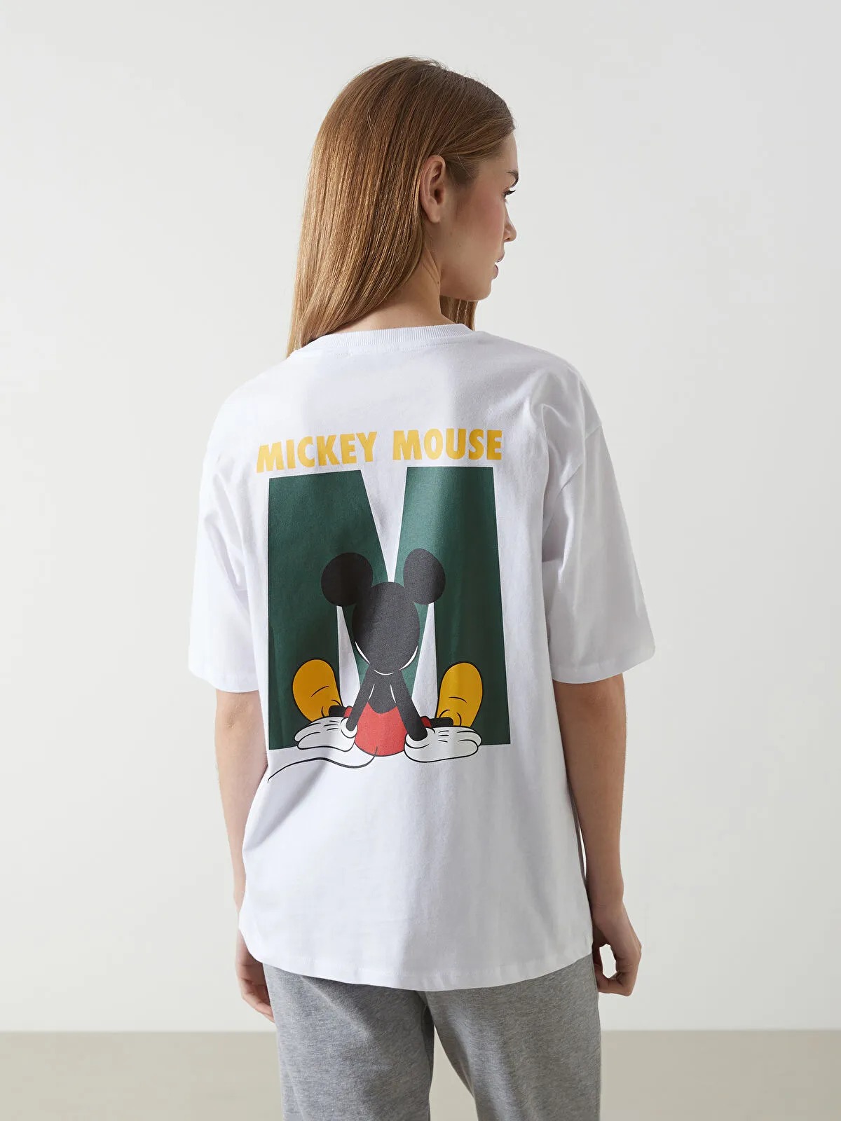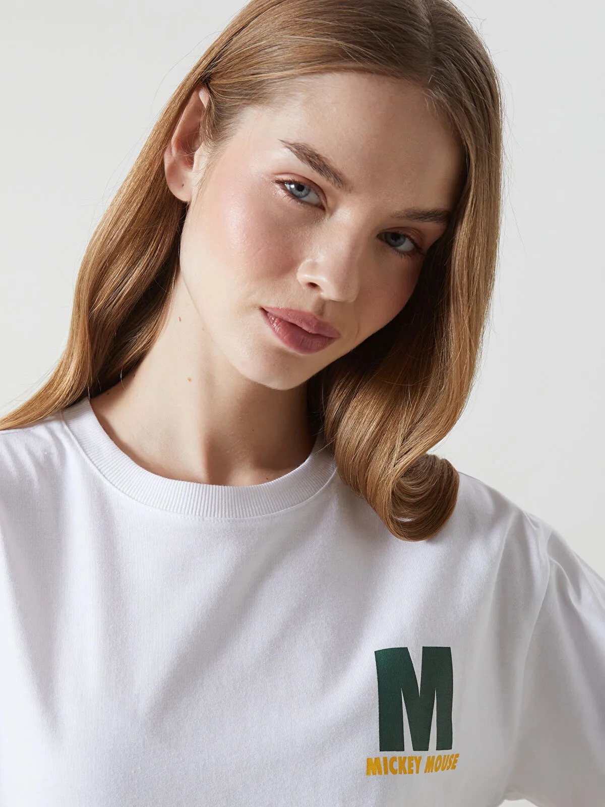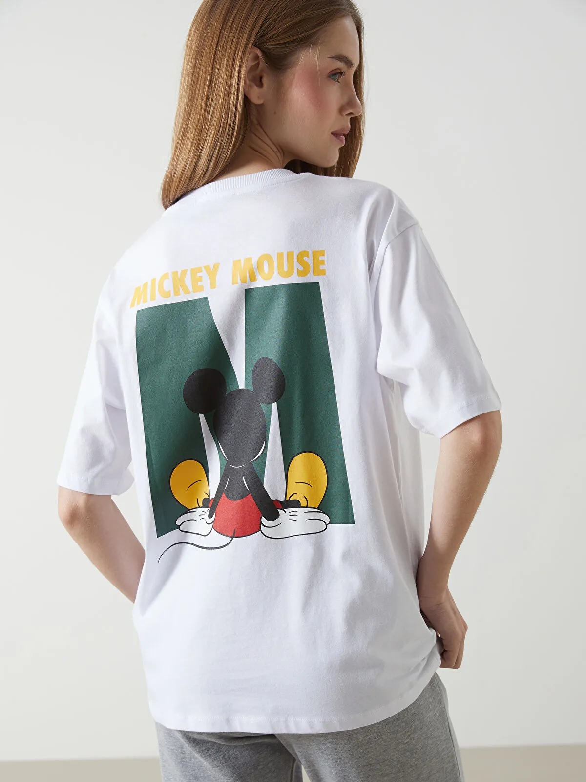 تيشيرت نسائي بلون أبيض ناصع، بياقة دائرية قصيرة وأكمام قصيرة، مزين بطبعة مرخصة رسميًا لشخصية Mickey Mouse تضفي لمسة مرحة وشبابية على الإطلالة. تصميم Oversize يمنح حرية حركة كاملة وراحة ممتازة طوال اليوم، مثالي لإطلالة كاجوال أنيقة وغير رسمية.