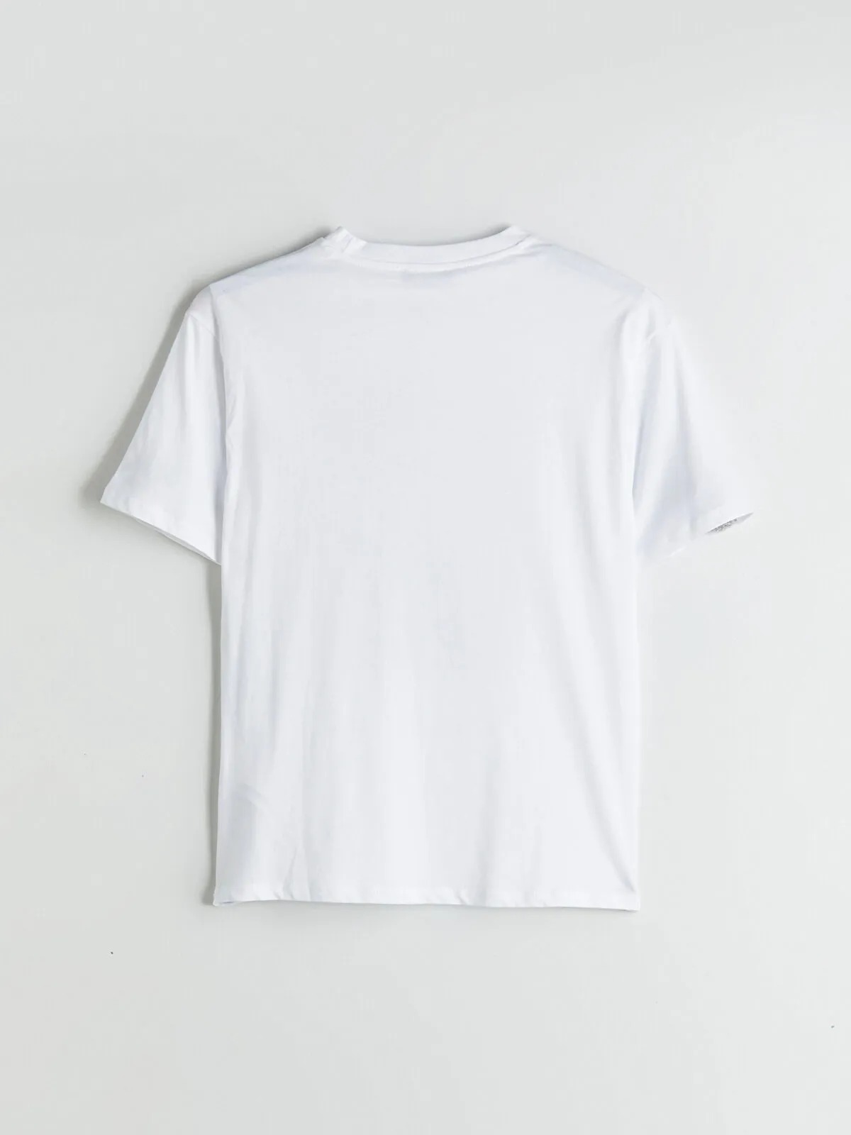تيشيرت نسائي بلون أبيض ناصع، بياقة دائرية قصيرة وأكمام قصيرة، مزين بطبعة أنيقة تضيف لمسة شبابية وعصرية إلى الإطلالة. تصميم Oversize يوفر راحة كاملة ومظهرًا واسعًا عصريًا، مثالي للإطلالة الكاجوال اليومية بأسلوب مريح ومتجدد.
